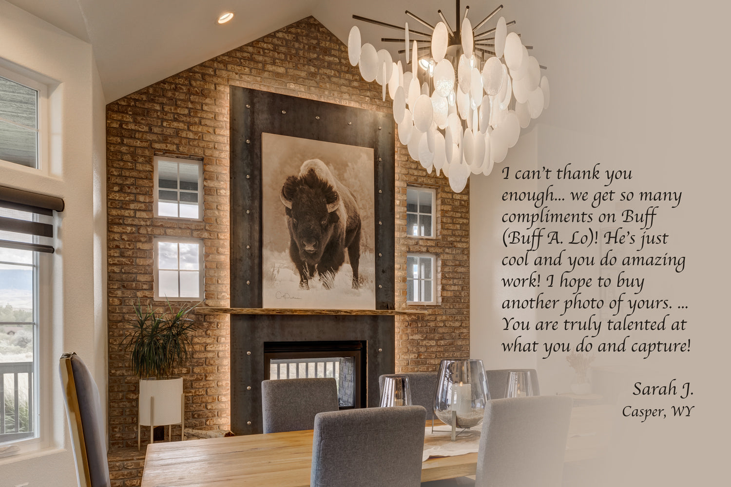 Good Day. ... had it [Perseverance] framed and hung it above the fireplace in our formal sitting room. ... If you have any other incredible photos of bison, we are definitely interested in another one...thanks again!