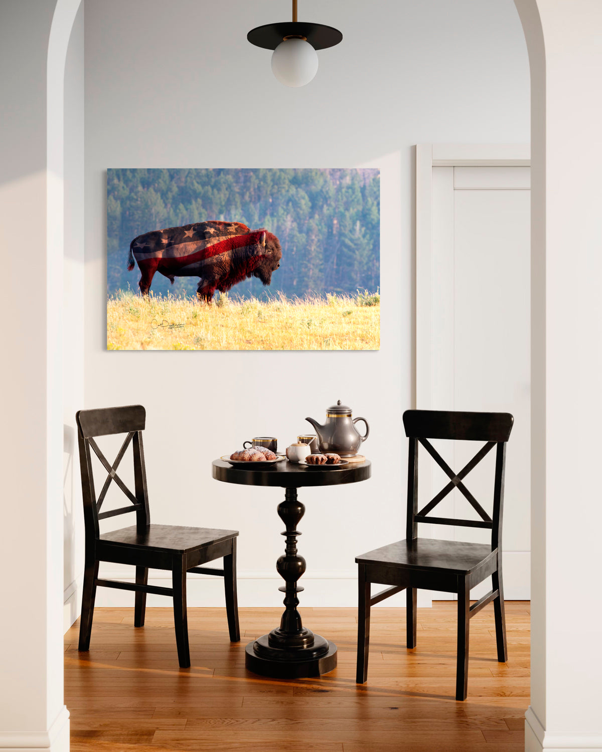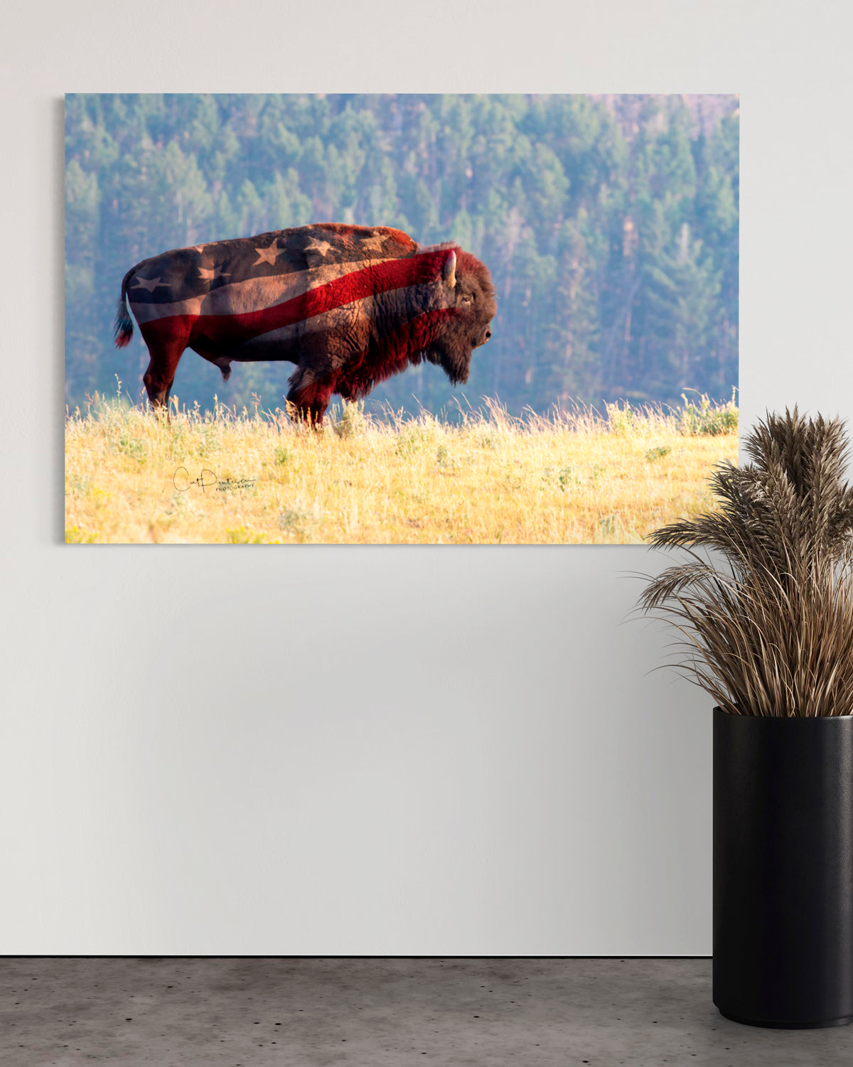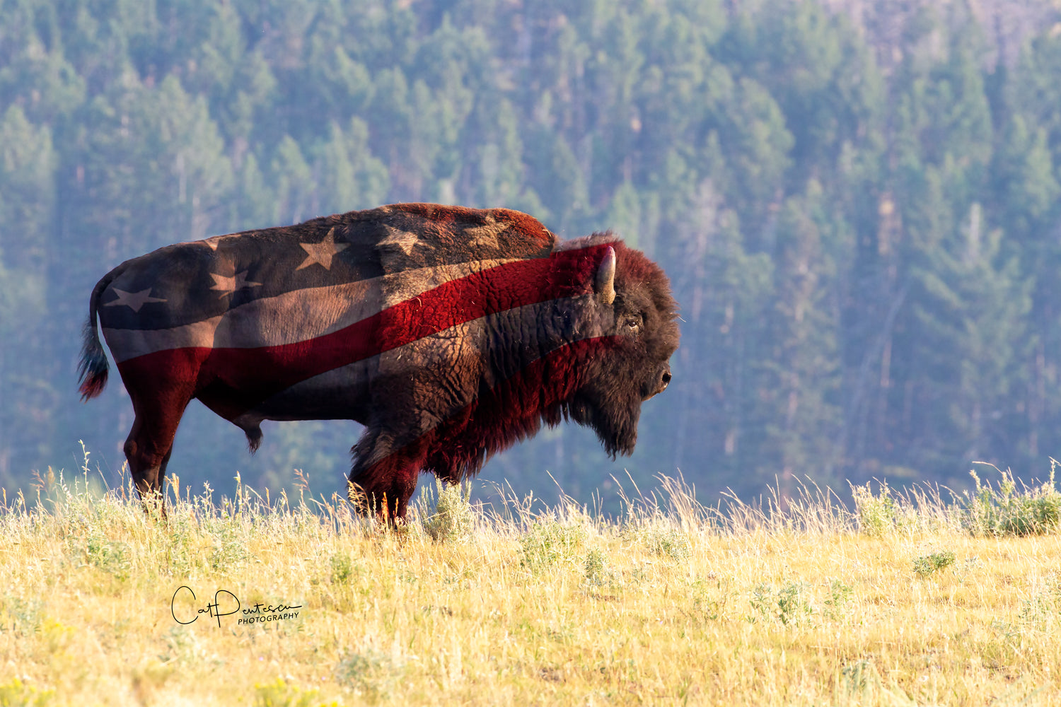 "America was built on courage, on imagination and an unbeatable determination. " Harry S. Truman ~ Two ionic symbols create this powerful image. Whether you call him a buffalo, bison or Tatanka, his American roots run deep in US history, as does Old Glory, our American flag.