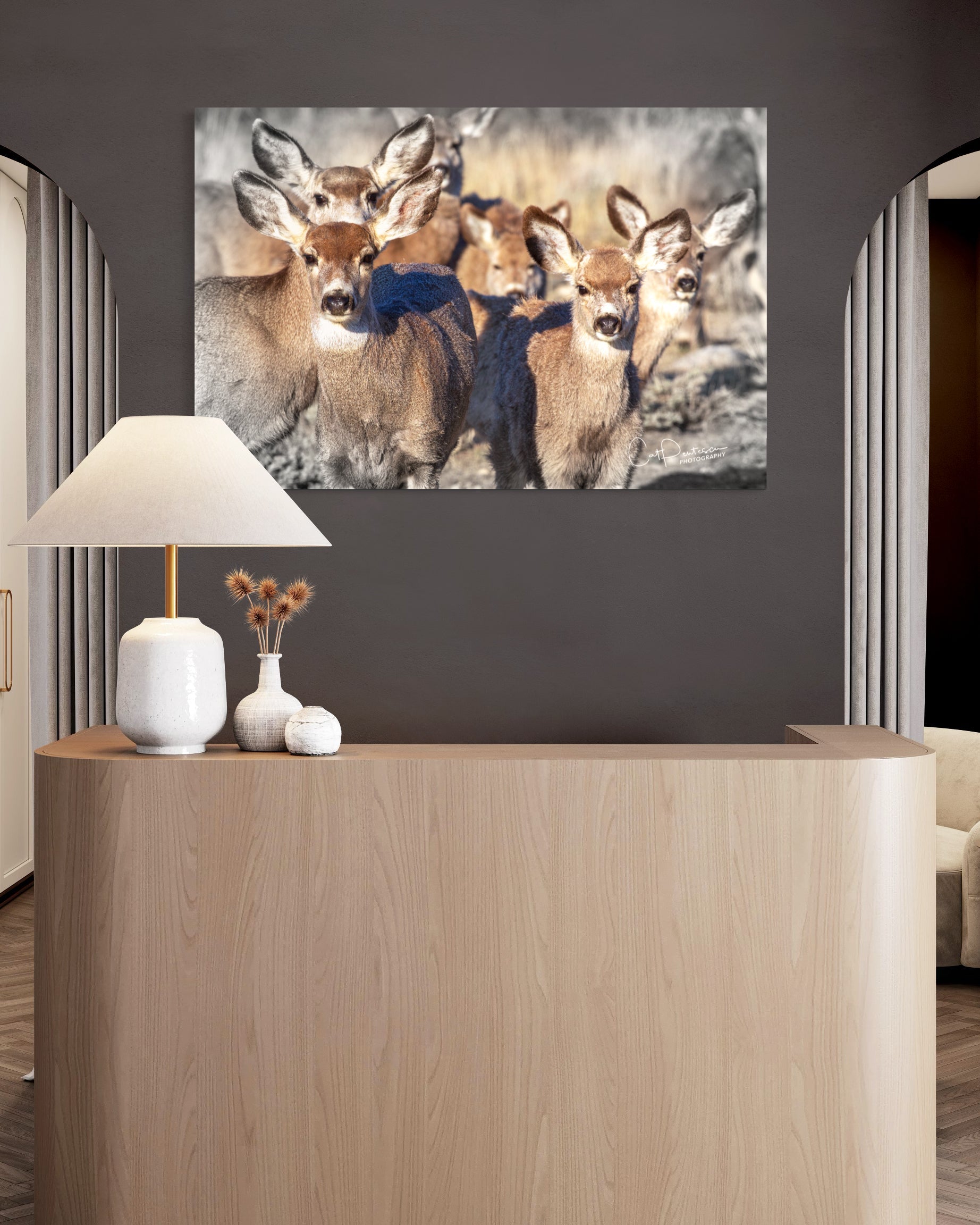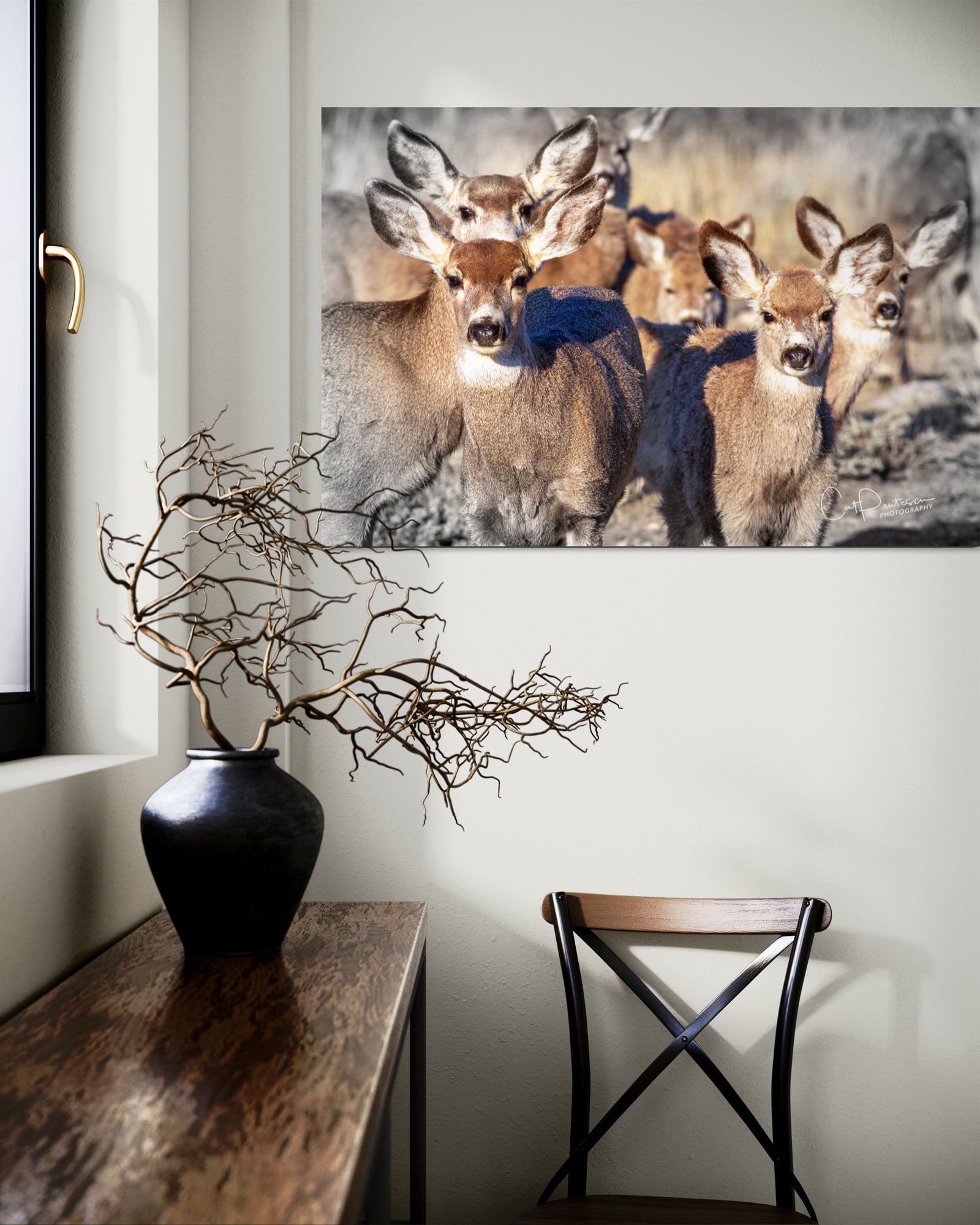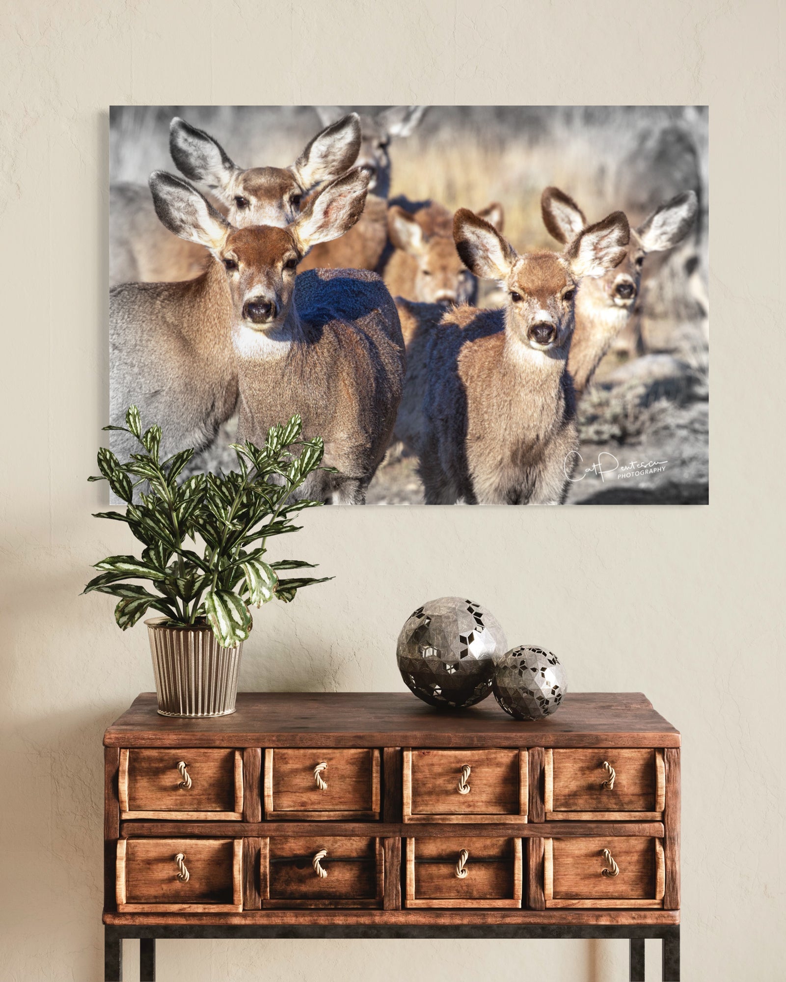 Band of mule deer face to face with my camera! Curiosity got the best of them as they stood together watching me photograph them. Safety in numbers in the wild.