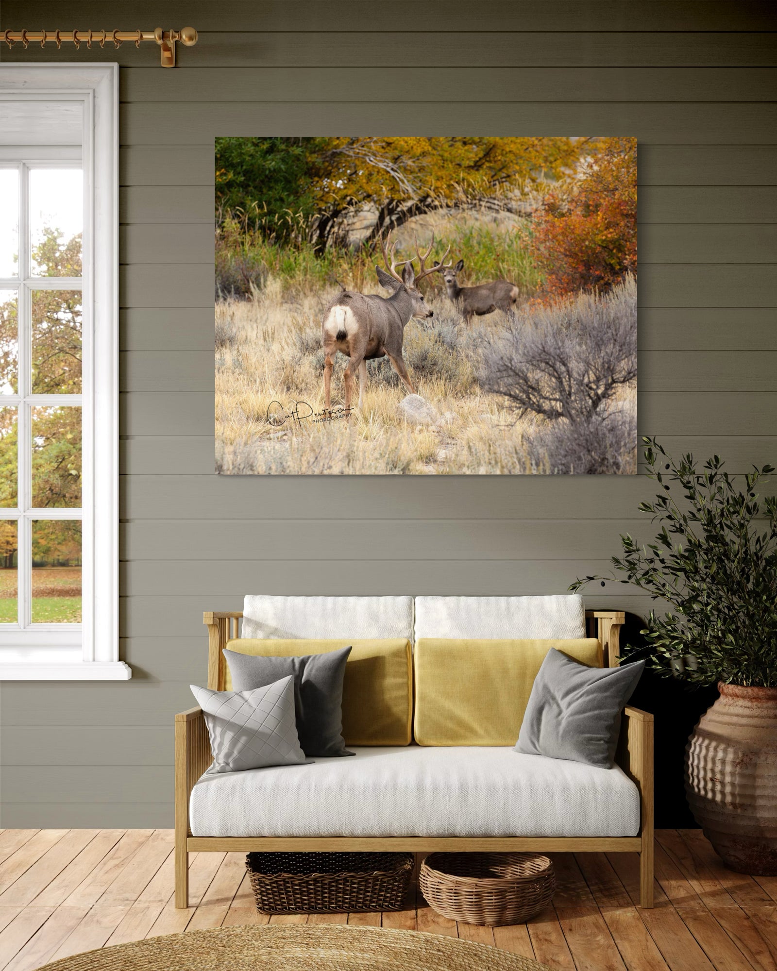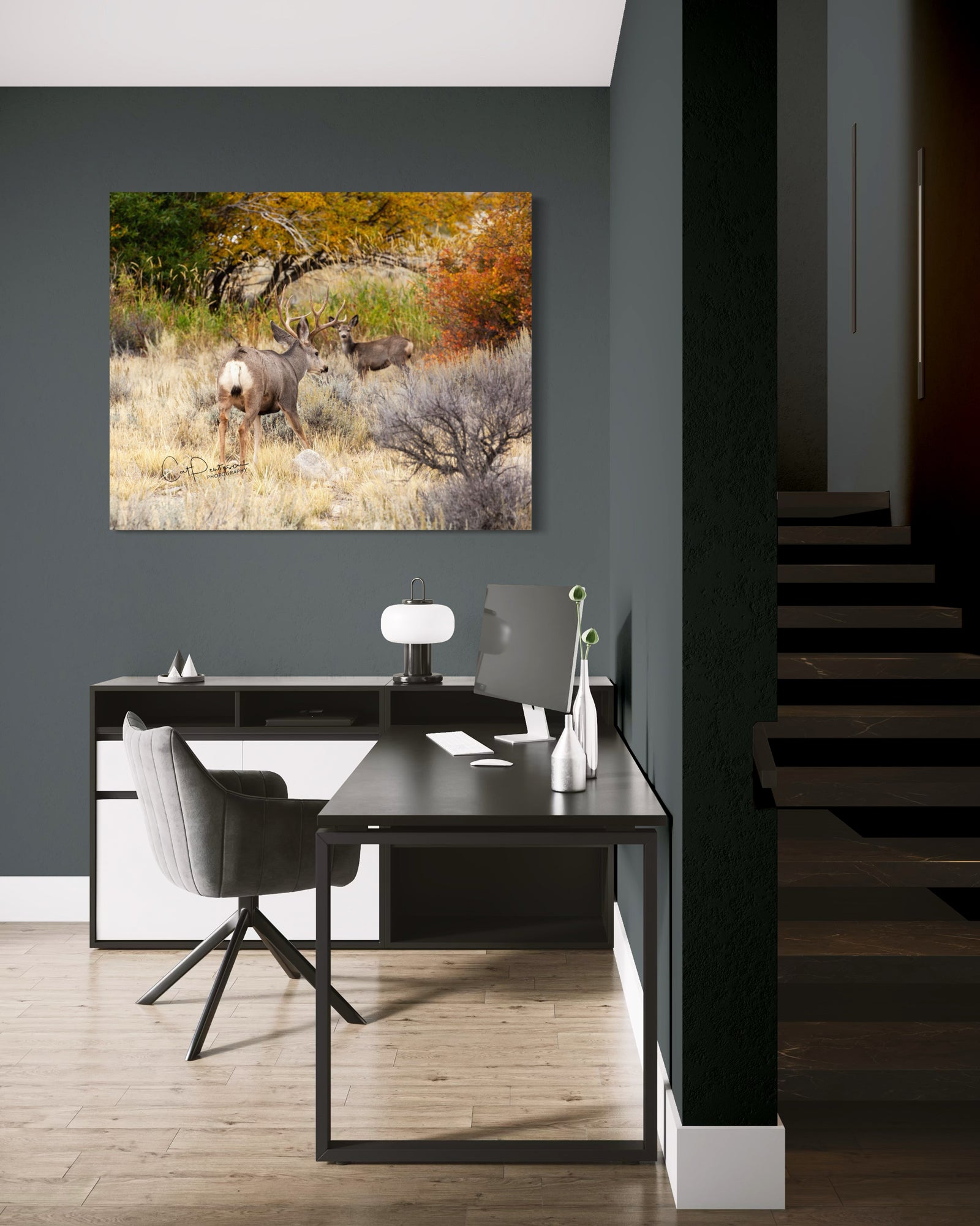 The temperature is falling, leaves are putting on a show before falling to the ground, his velvet is shed and hunting season is upon us. Fall is here and this big buck dodging hunters, meeting up with his ladies and getting ready for winter. Available on canvas, metal or as a paper print. This stunning piece was taken by Nature and Wildlife Photographer, Cat Pentescu and will bring the wild in Autumn Antlers into your home or office year round.