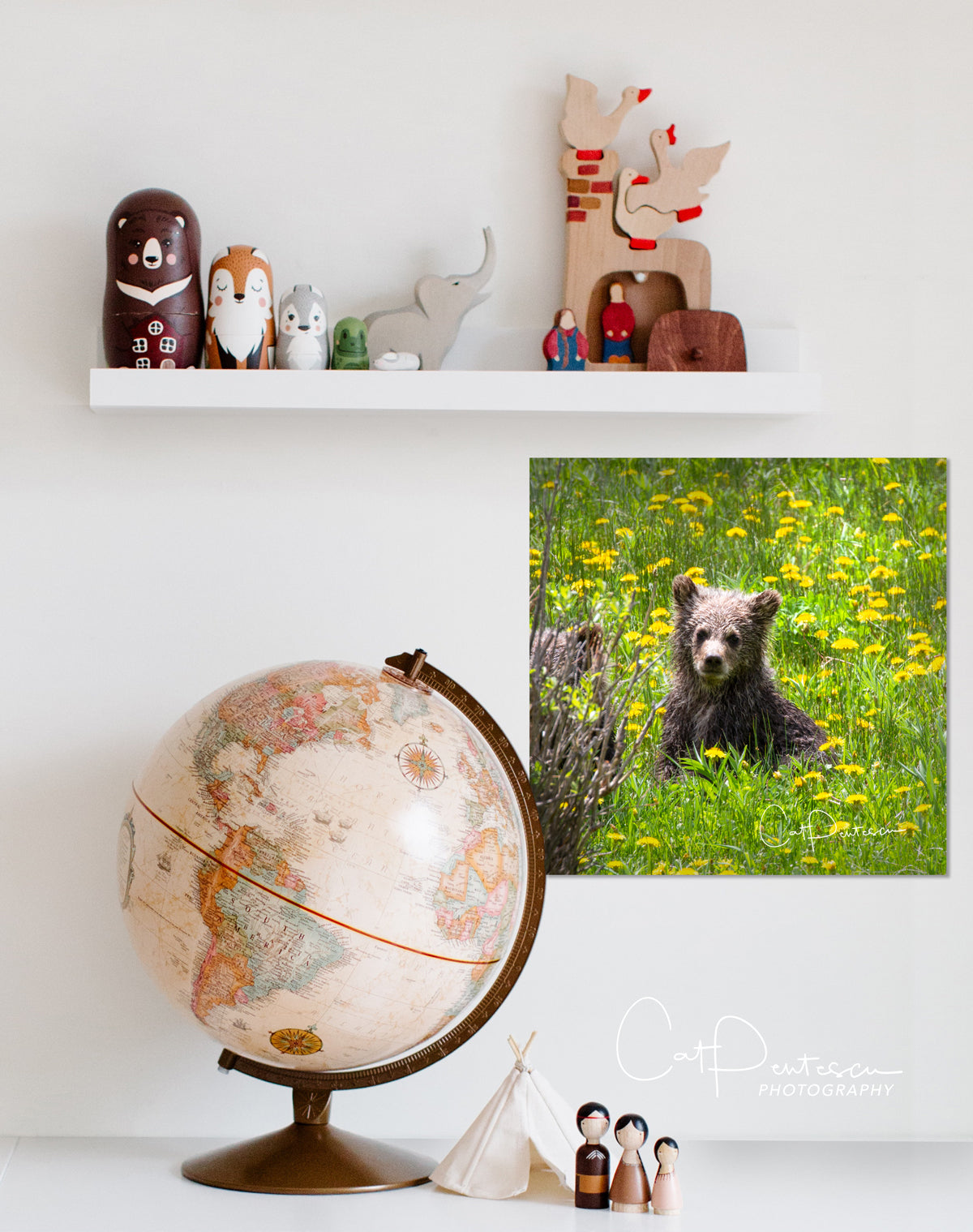Grizzly cub looking cute and cuddly in a field of yellow wildflowers. Definitely a treat to see, but be "beary" aware, Momma Bear is close by and watching too!