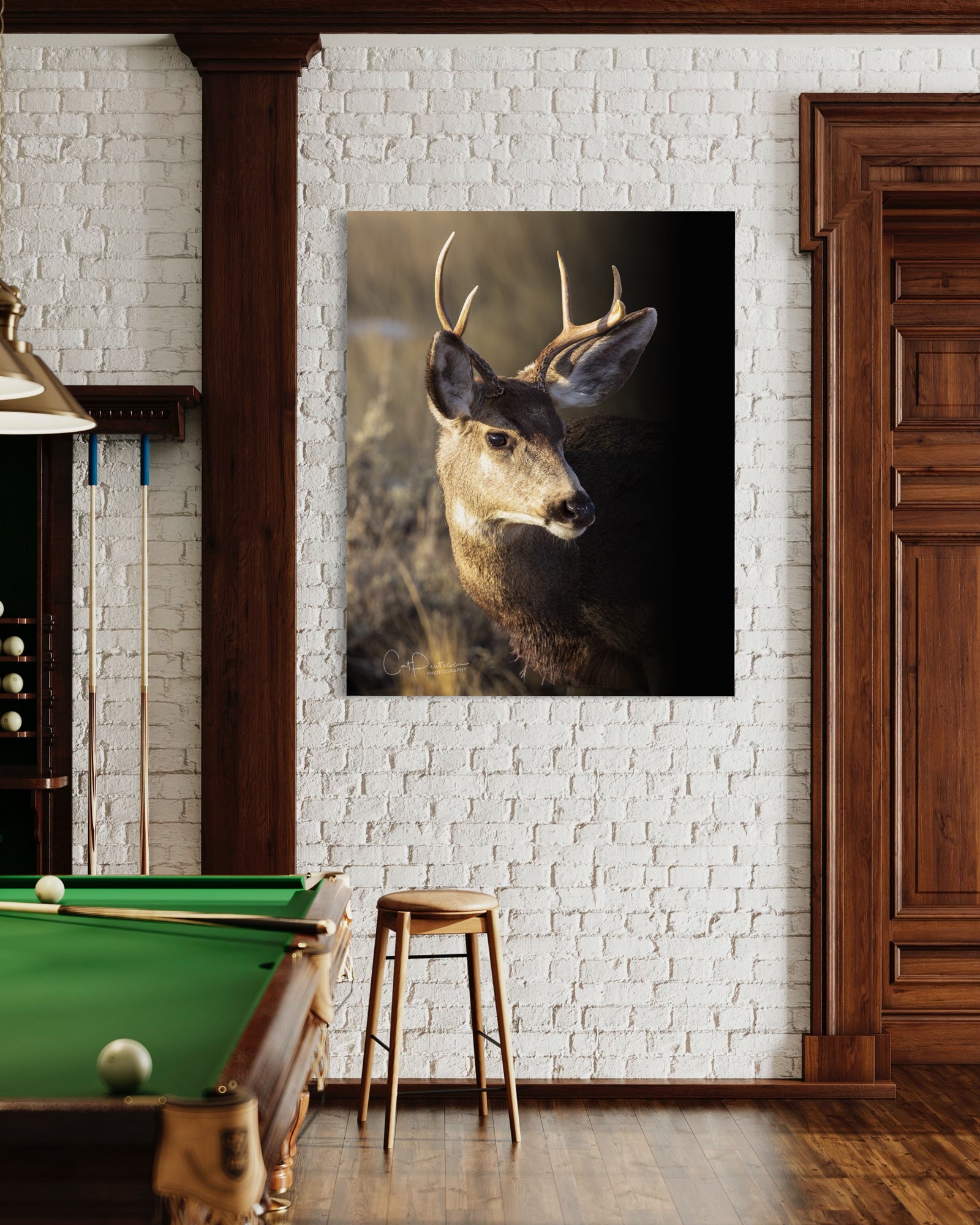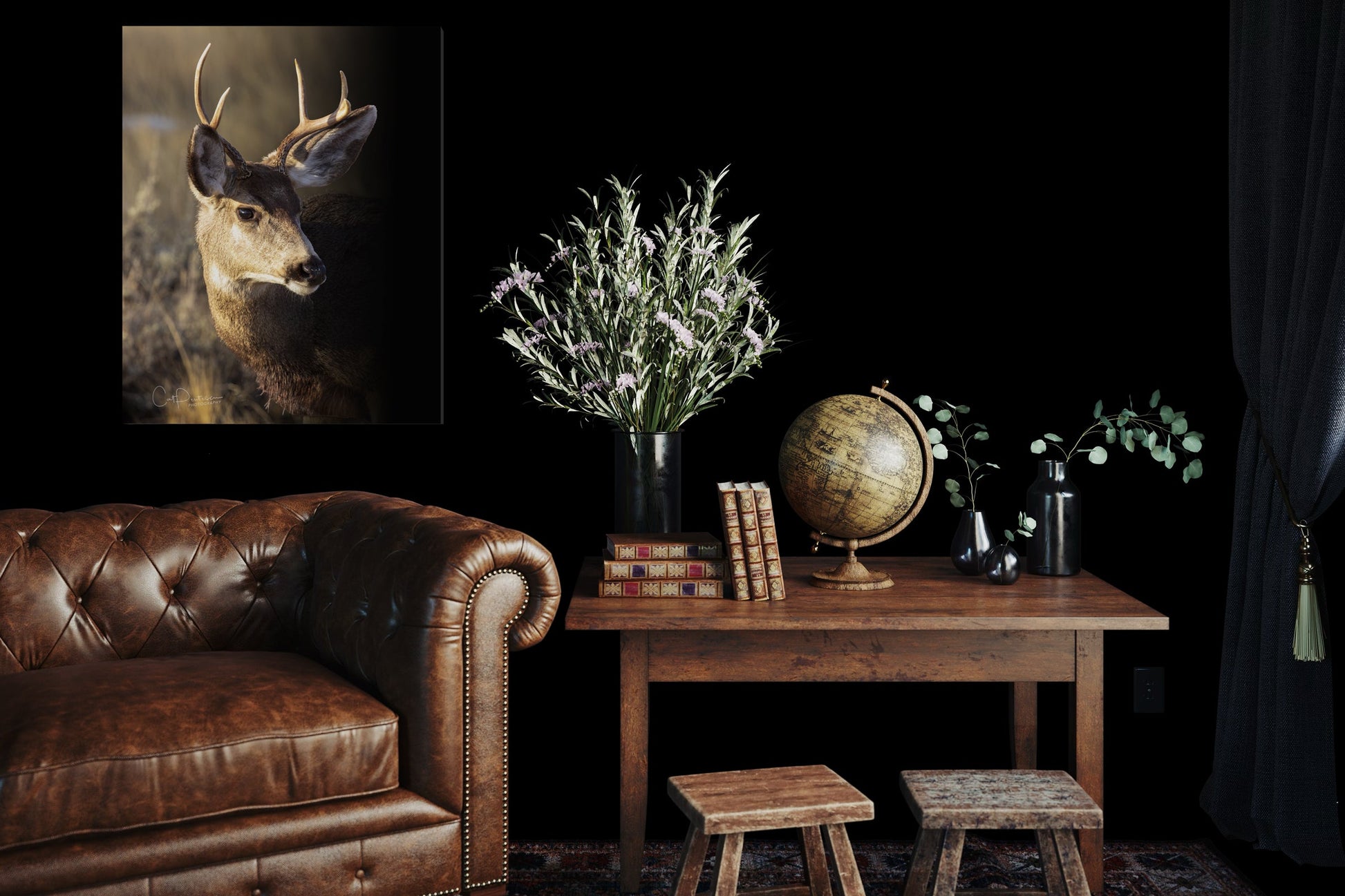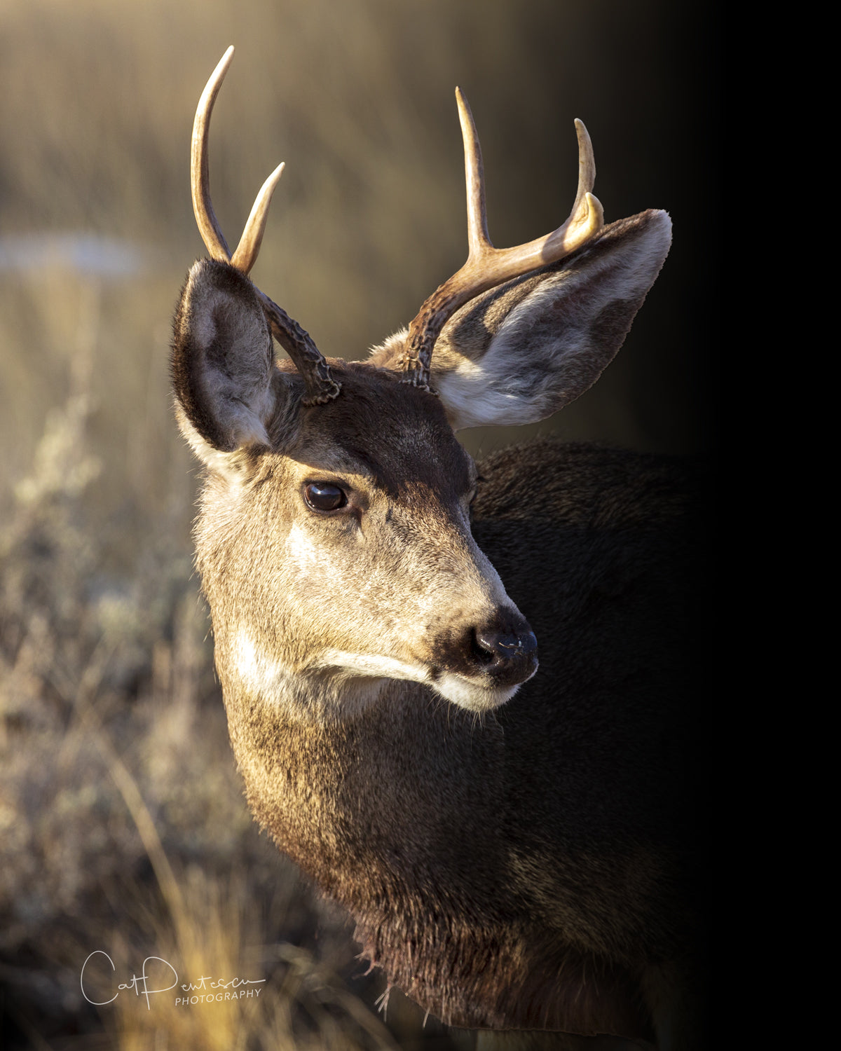Many things set this young mule deer buck apart! Not just his spirit and pride, but physically as well. Can you pick out what I am referring to? Unlike what I am used to seeing, he has a different number of points on each antler. Three on one side, and two on the other with no sign of damage to either side, which makes him even more special. Despite not be "the same" as the other bucks in this herd, he is confident and proud.