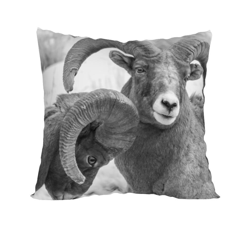 Doing what bighorn boys do! The details in this timeless, black and white image is incredibly detailed, from the cracks in their horns to the gleam in their eyes.