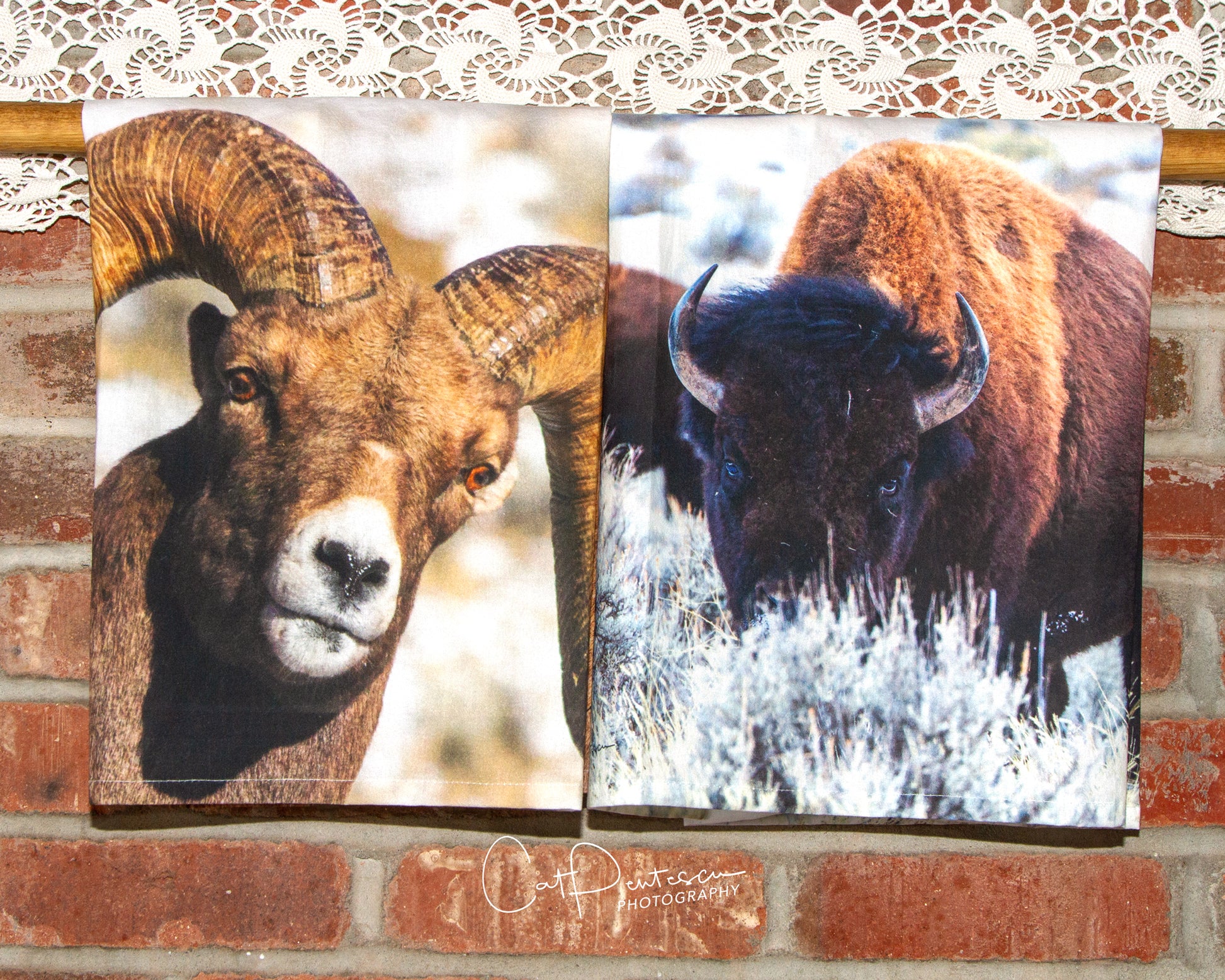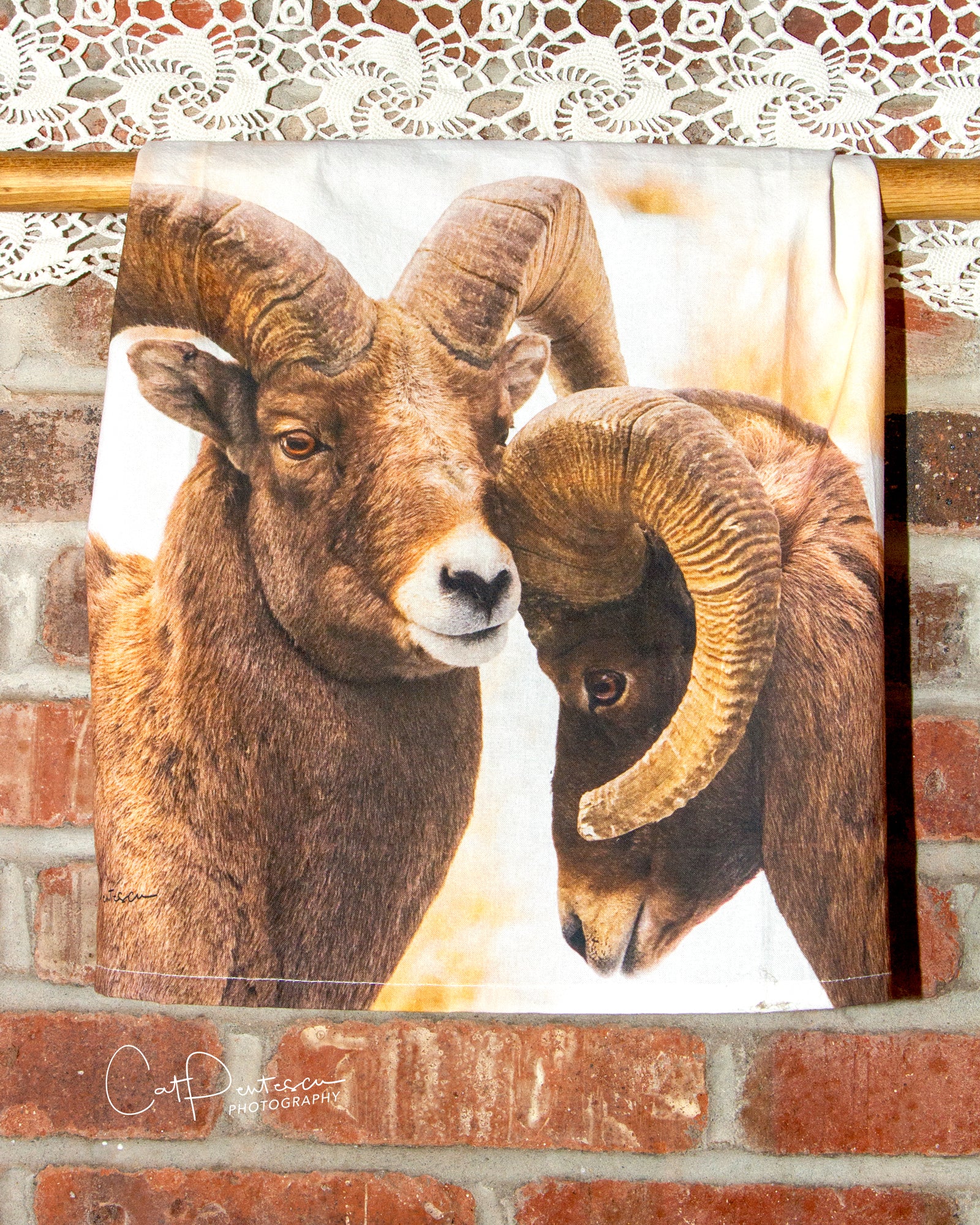 These bighorn rams mean business, whether they are sparing with each other or helping you dry your dishes!