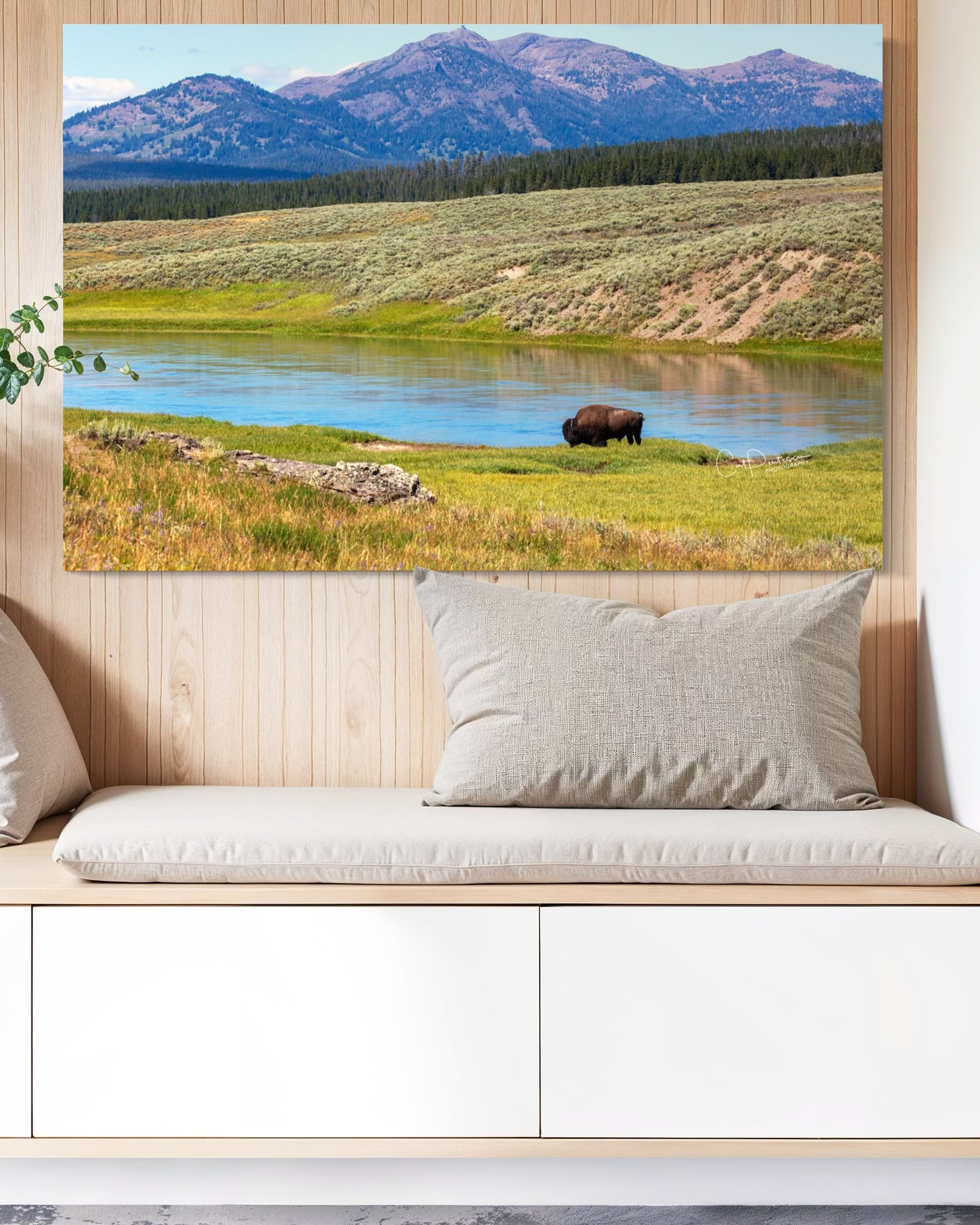 A peaceful walk around a mountain lake in the fresh, springtime air is good for the soul... just ask this big bull buffalo!