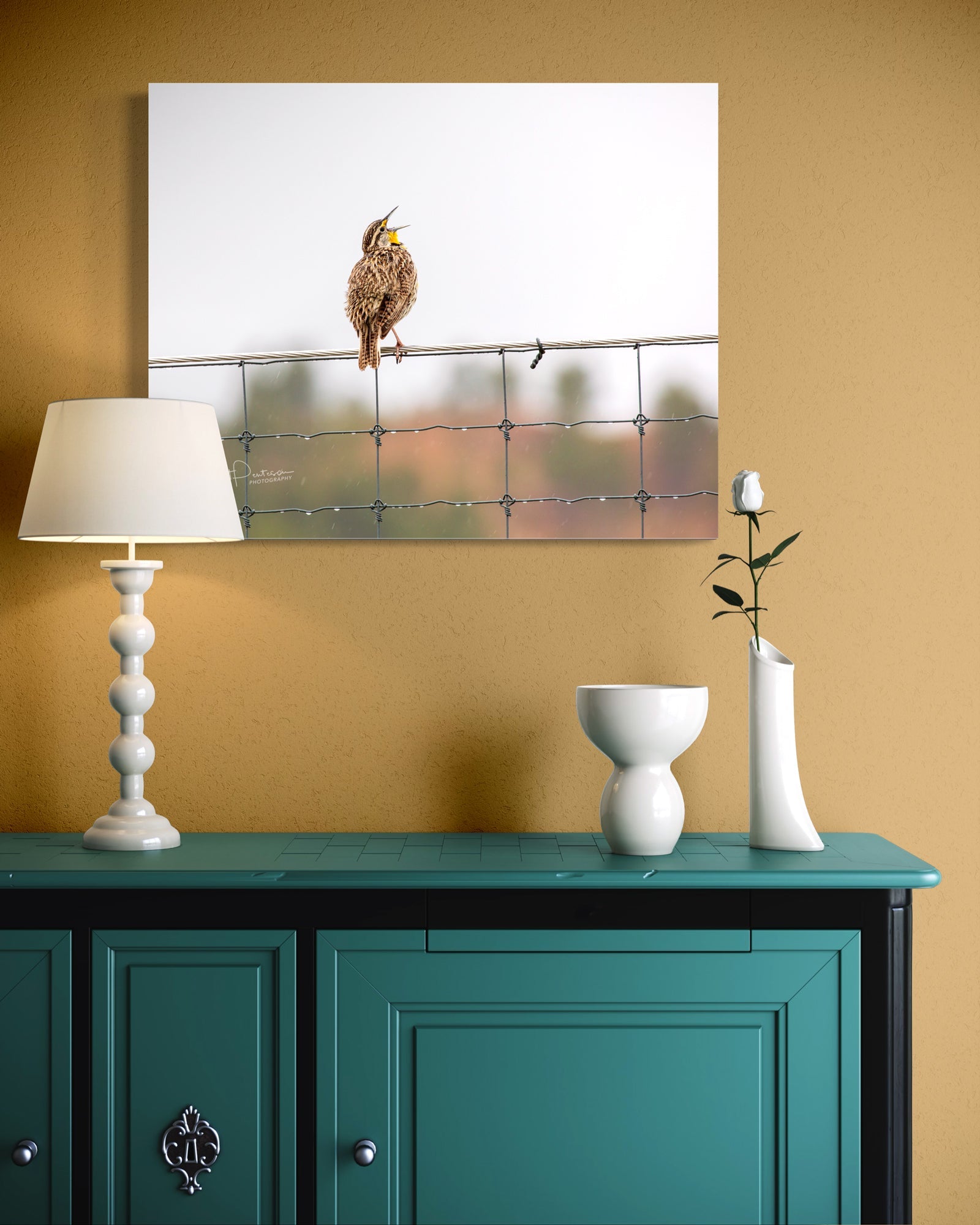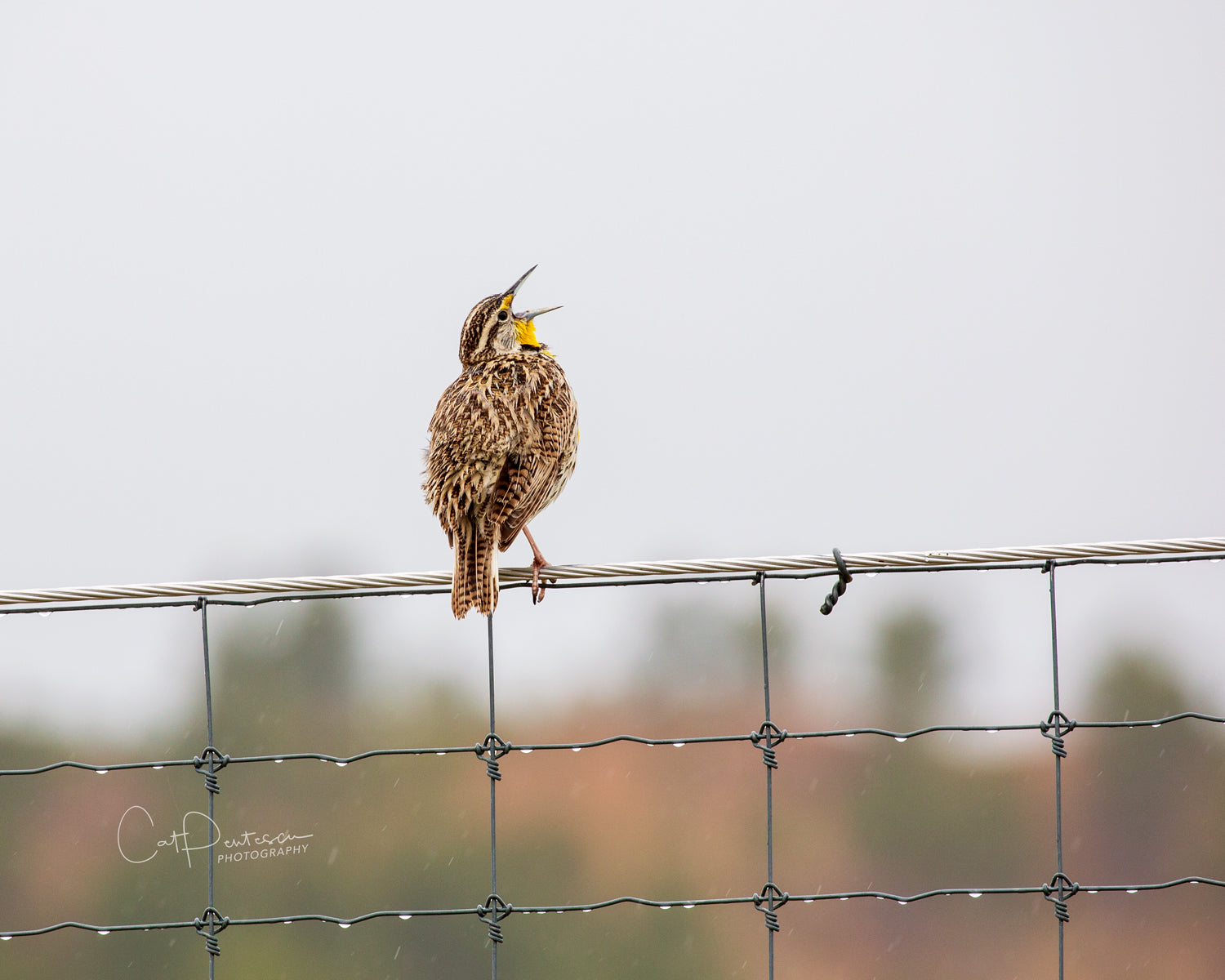 The rain didn't stop this meadowlark from singing his heart out... I am sure he caught a few raindrops while belting out his song!