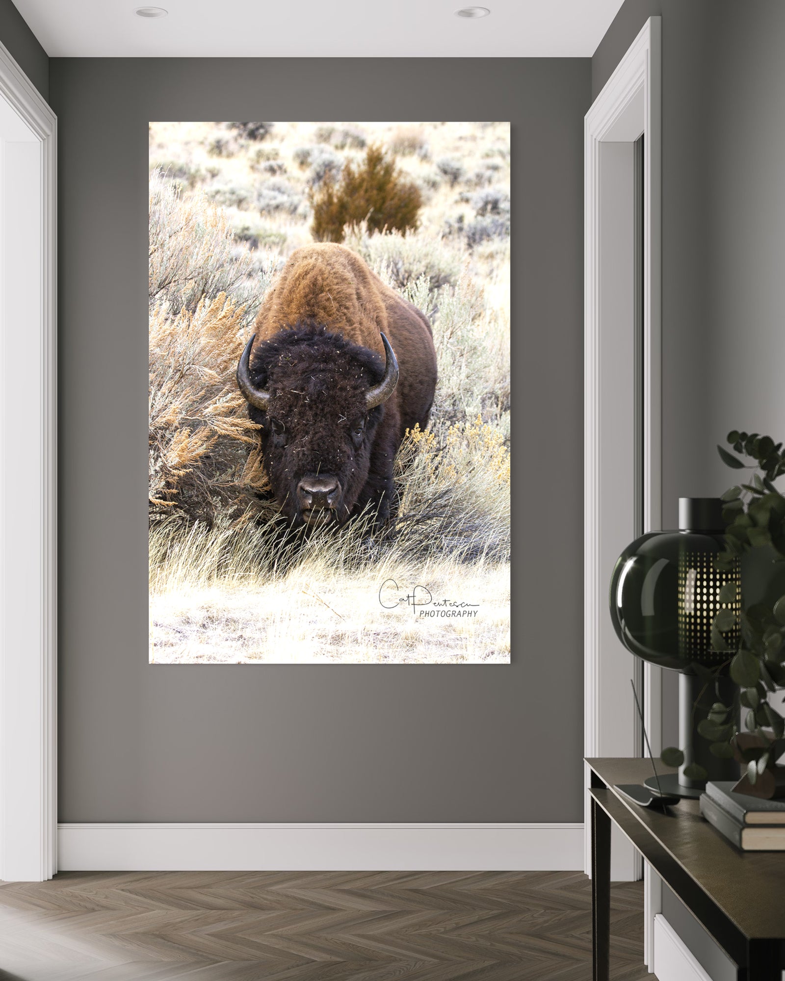 This buffalo is big, bold and "Coming Through"! Don't think it would be wise to get in his way! He makes coming through sage brush look like a walk in the park!