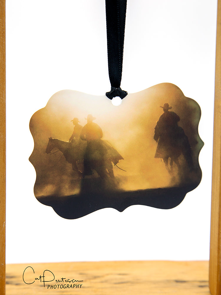Why 307? Because it is the only area code in all of Wyoming! The western way of life - silhouettes of cowboys on horseback in the dusty, hot evening sun. Unique ornament that can be hung at Christmas or year 'round. Images are from Cat Pentescu's Riding in the Dust series.