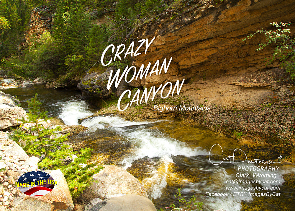 Beautiful views, towering rock walls and rushing water is what Crazy Woman Canyon is all about. Hiking, fishing and more in the Bighorn Mountains. This 5"x7" full color greeting card is blank inside, ready for you to add your personal message.