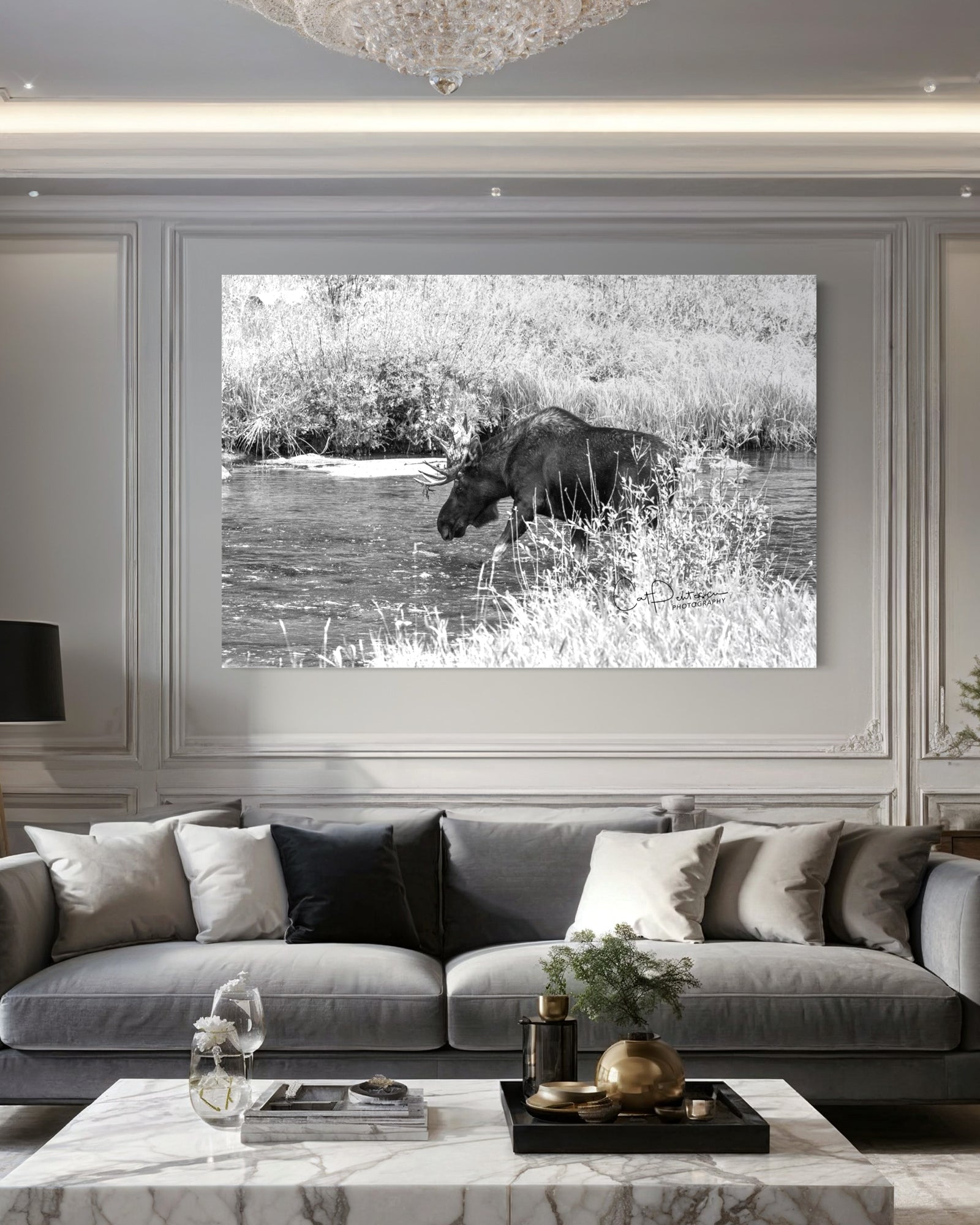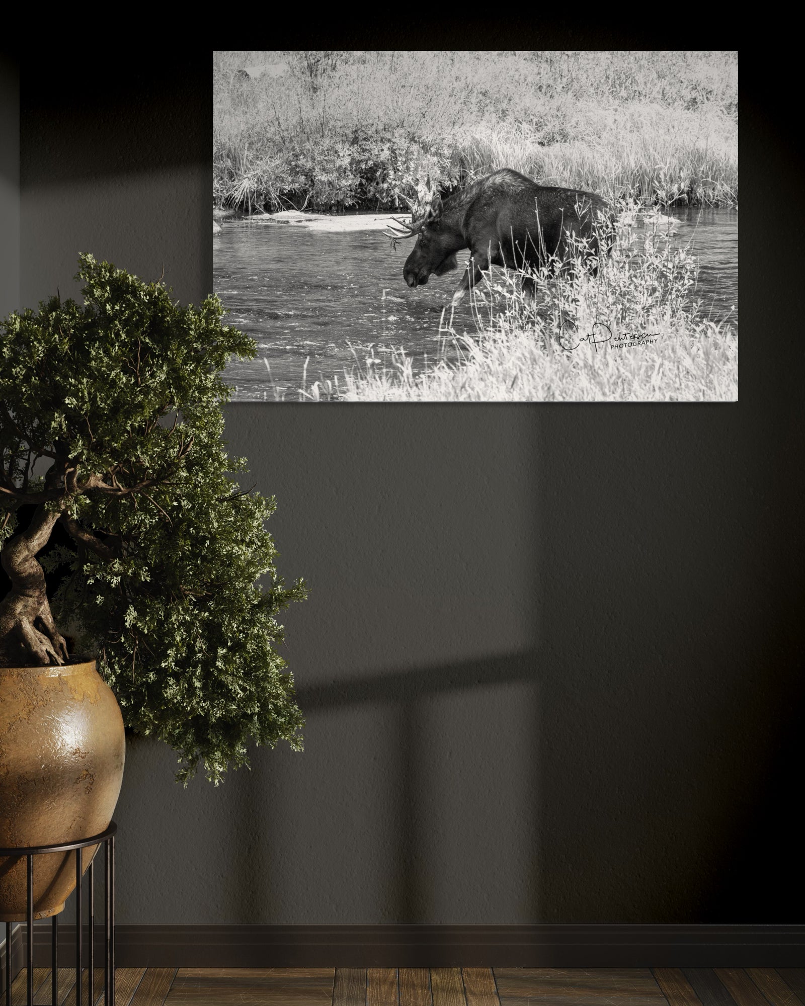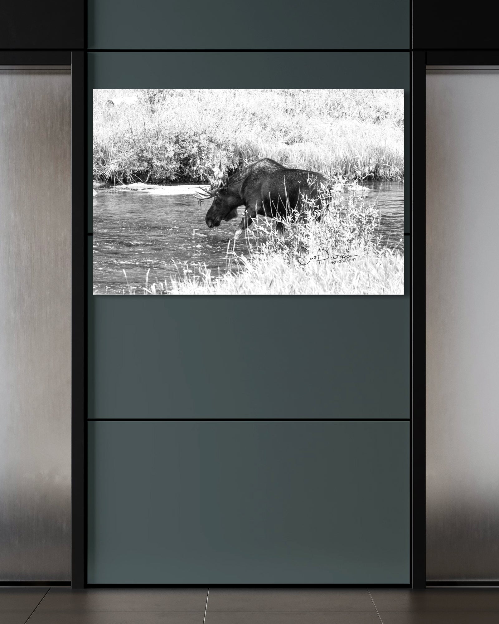 For a big boy like this, crossing a creek is like walking through a puddle! With brush caught in the cracks of his paddles, he grabs a drink of mountain water and makes his way to the other shore. Taken by Nature and Wildlife Photographer, Cat Pentescu.
