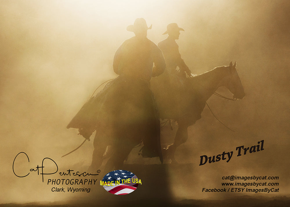 Part of my Riding in the Dust images as these cowboys and cowgirls were riding and working on a dry, dusty late afternoon. This 5"x7" full color greeting card is blank inside to write your message.