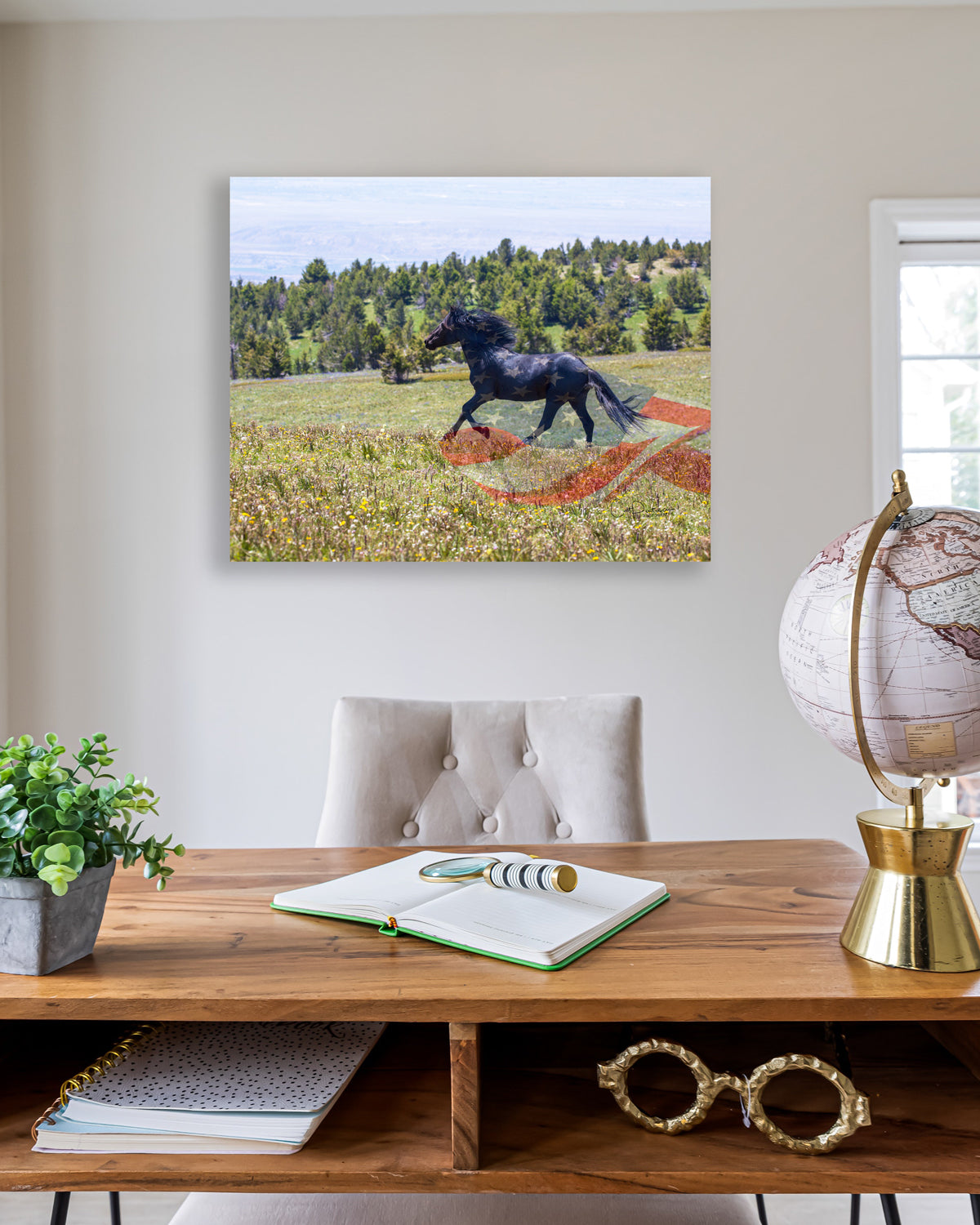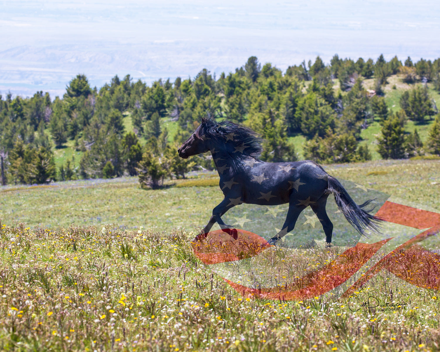Feel the power of freedom in this two image montage featuring a Pryor Mountain wild mustang running free! So majestic and proud - Add the American flag and you have a true reminder of what the America stands for.