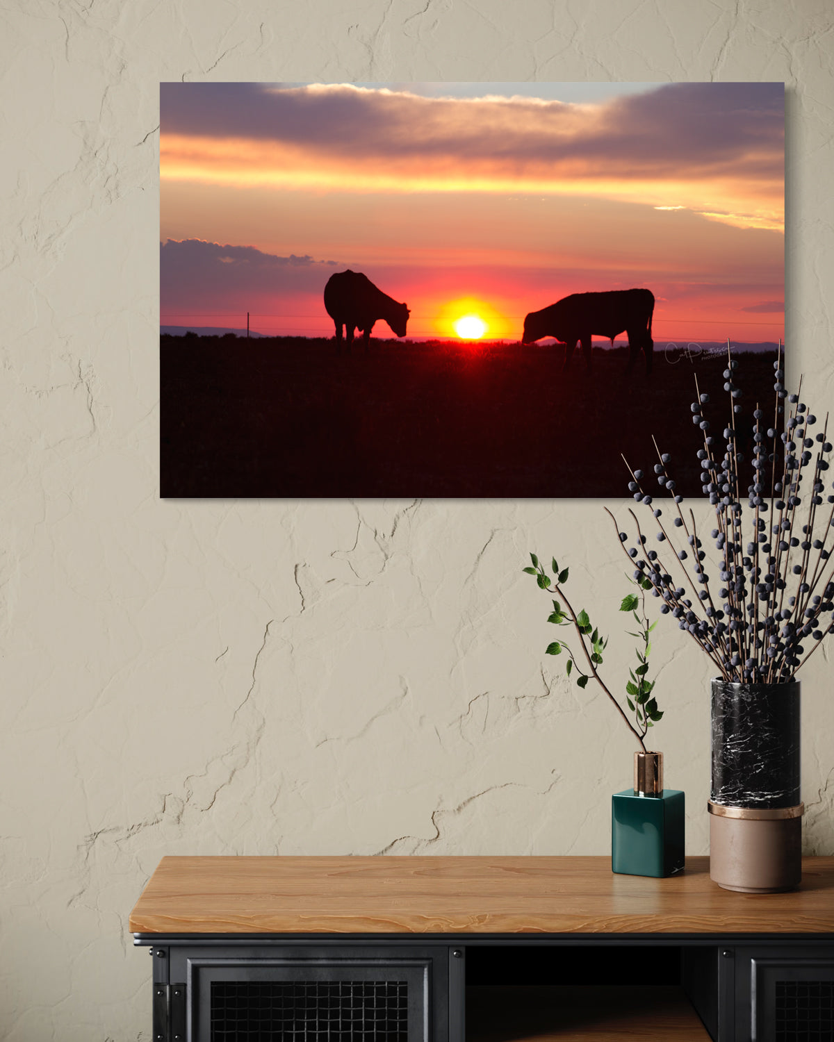 Life in the west - wide open spaces - beautiful scenery. Peace and quiet as the sun sets on grazing cattle.