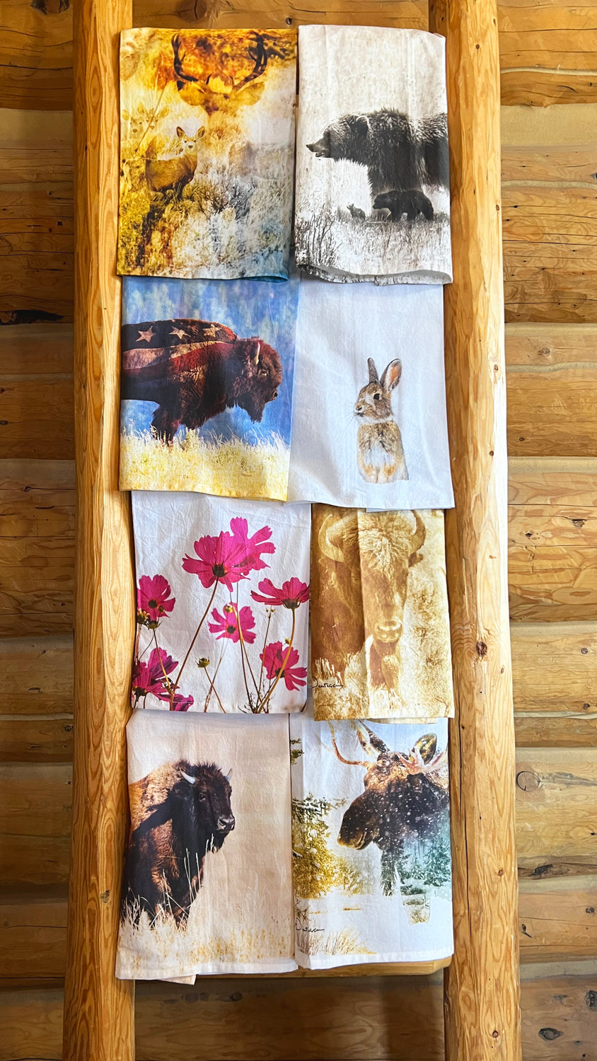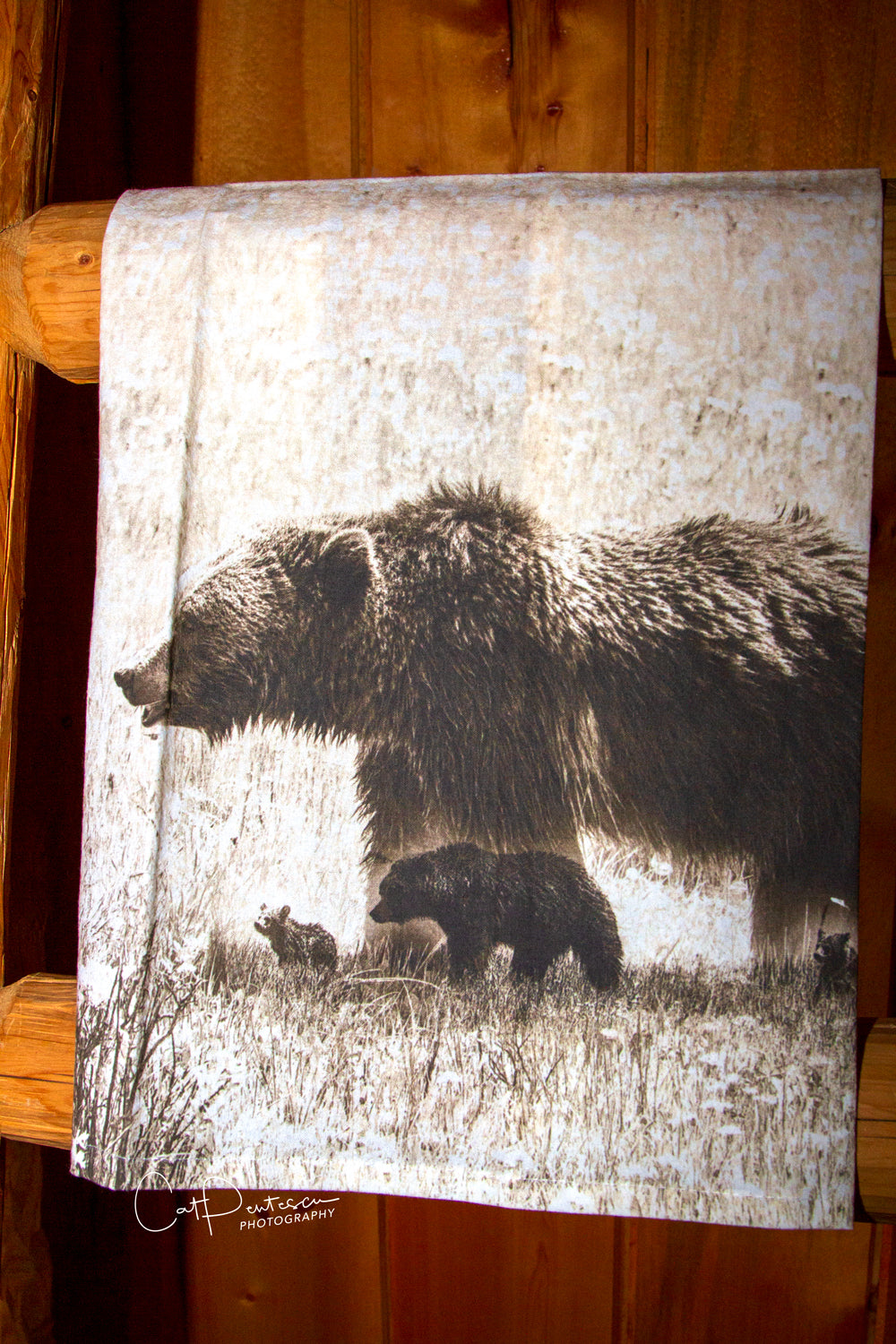 When you have twins, keeping track of them can be a challenge! Just ask this grizzly mom! This towel is created with two separate montages, one on each end of this unique towel. Each montage is two images of grizzly momma and two cubs. The larger bear is the spirit watching over the family of three.