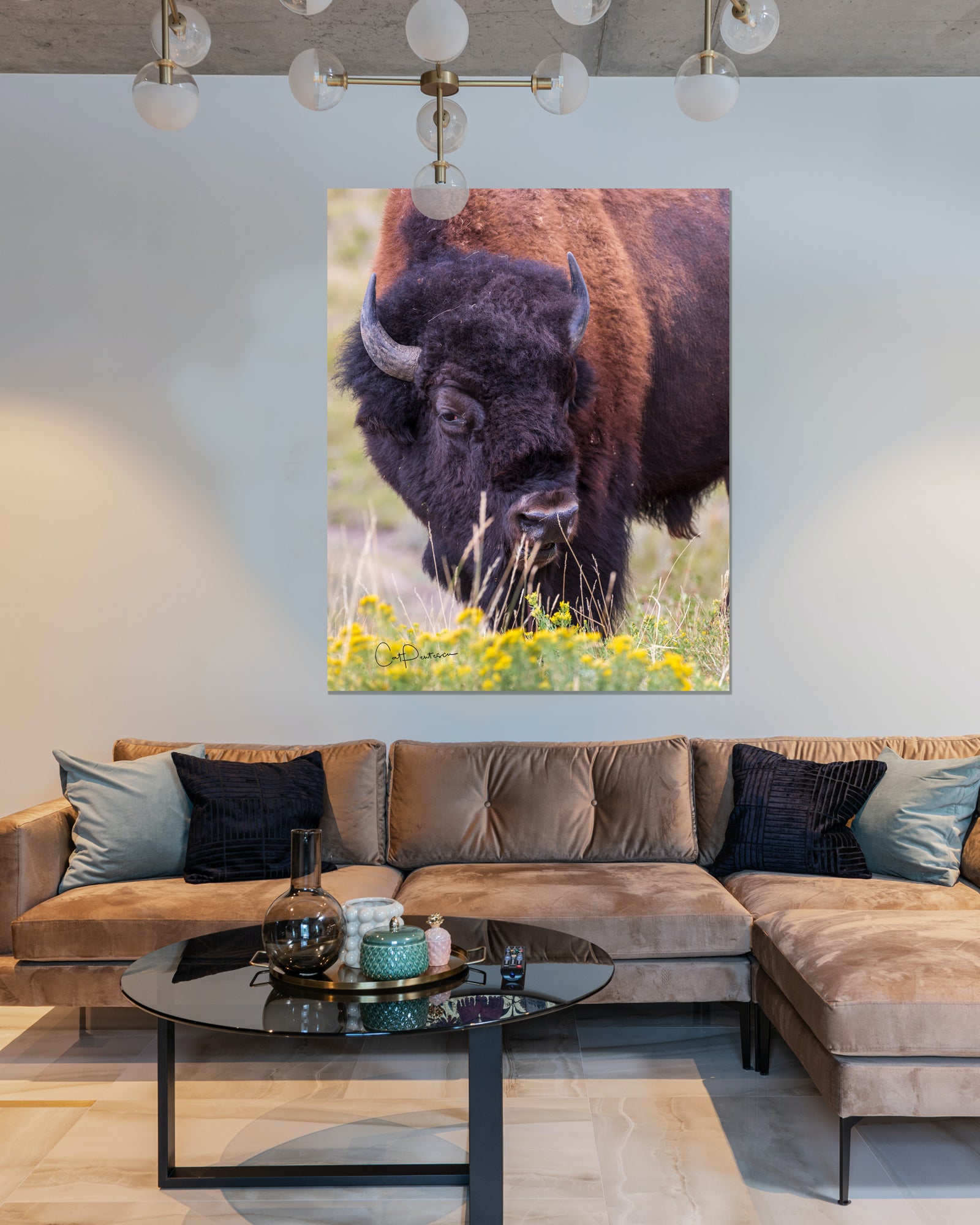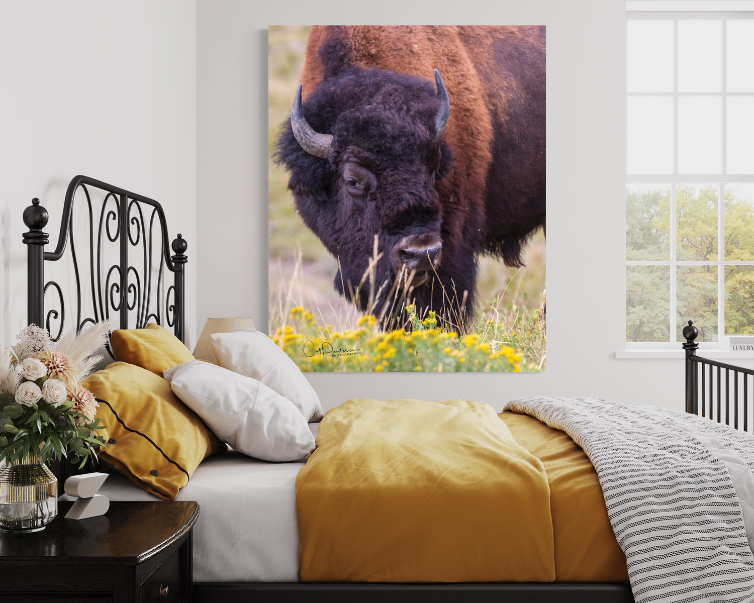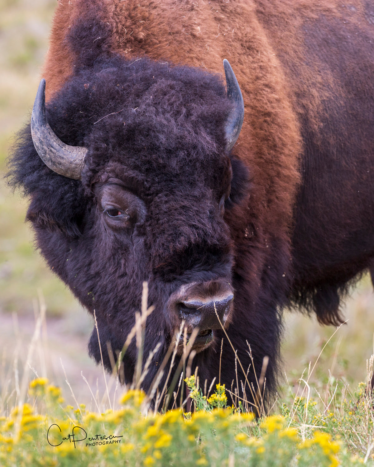 That look! Like really... you want to mess with me?! Make no mistake - this look is your warning! This remarkable buffalo has such a strong spirit! Let him draw you in with his strength and power. Photographed by Nature and Wildlife Photographer, Cat Pentescu.