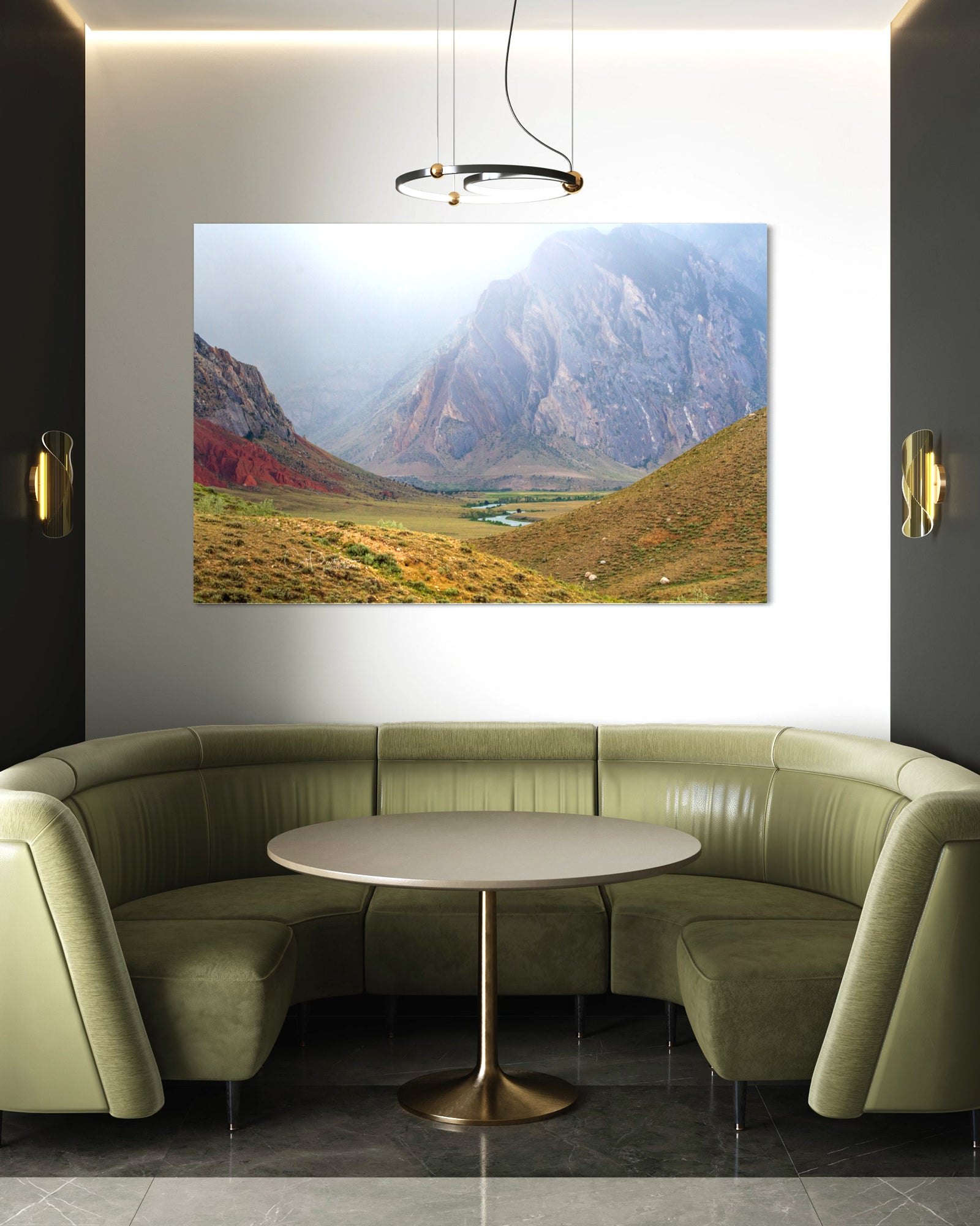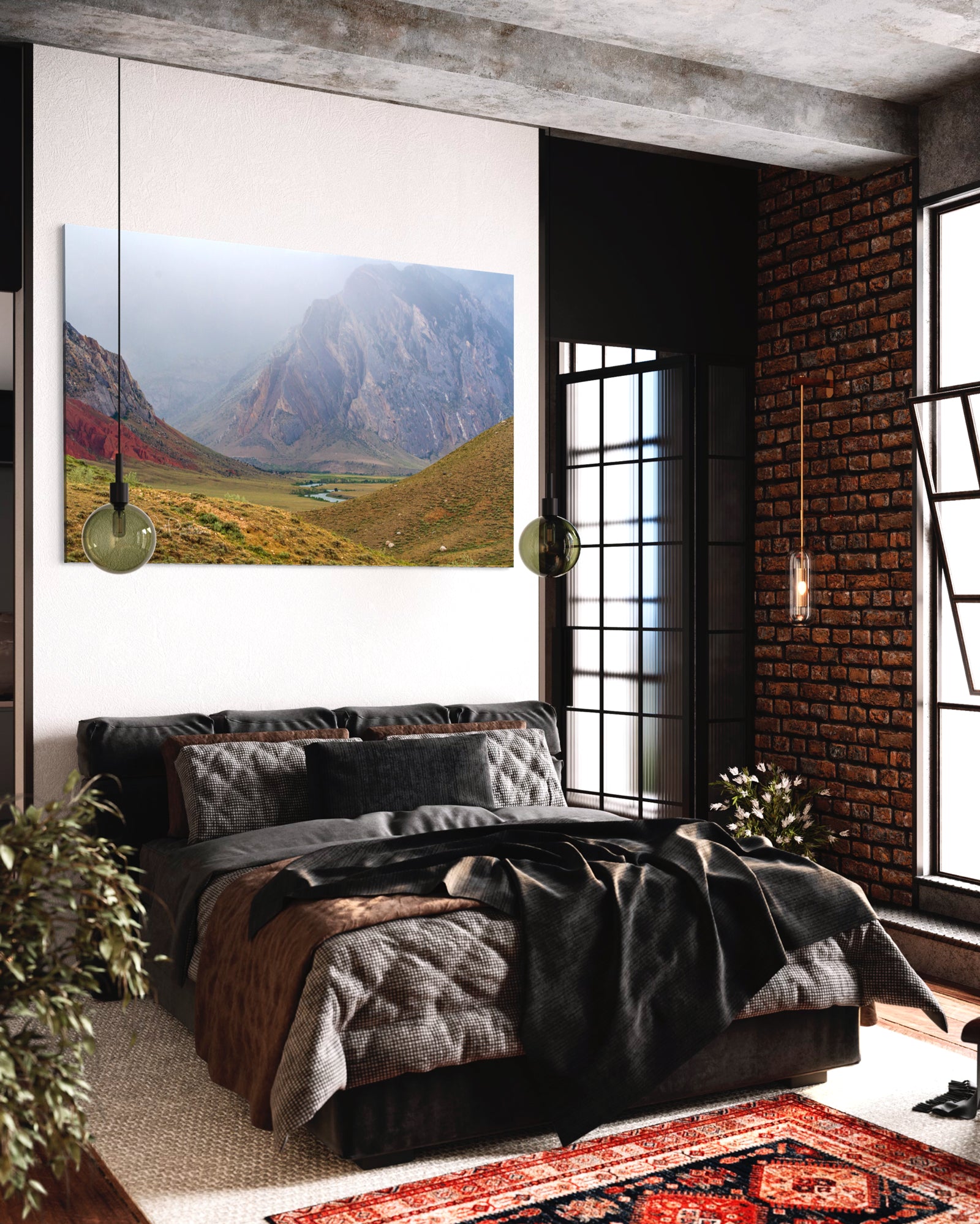 The Clarks Fork of the Yellowstone river wandering through the low clouds sets the mystical mood heading into the Clarks Fork canyon. Bring a little of NW Wyoming Wilderness into your home.