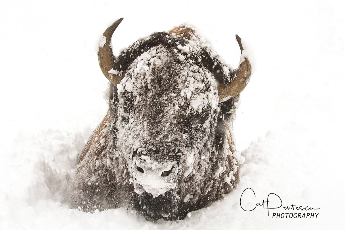 The perfect title for this image and the perfect image for the title! Buried in deep snow, this Buffalo / Bison knew better than to give up. Eventually he made it out and went on his way. Amazing to watch his brute strength and determination got him out of quite a predicament .
