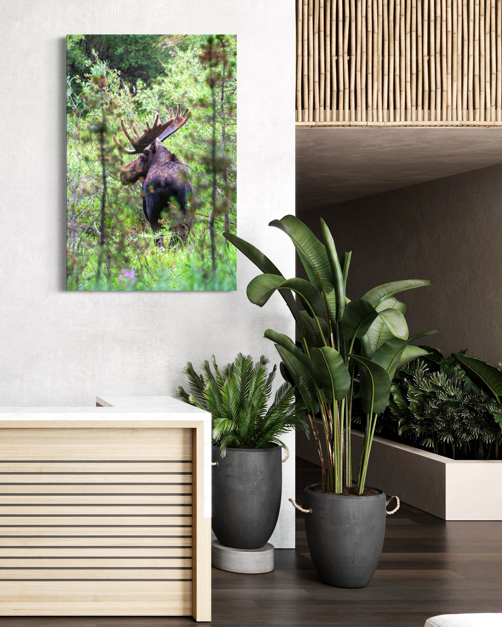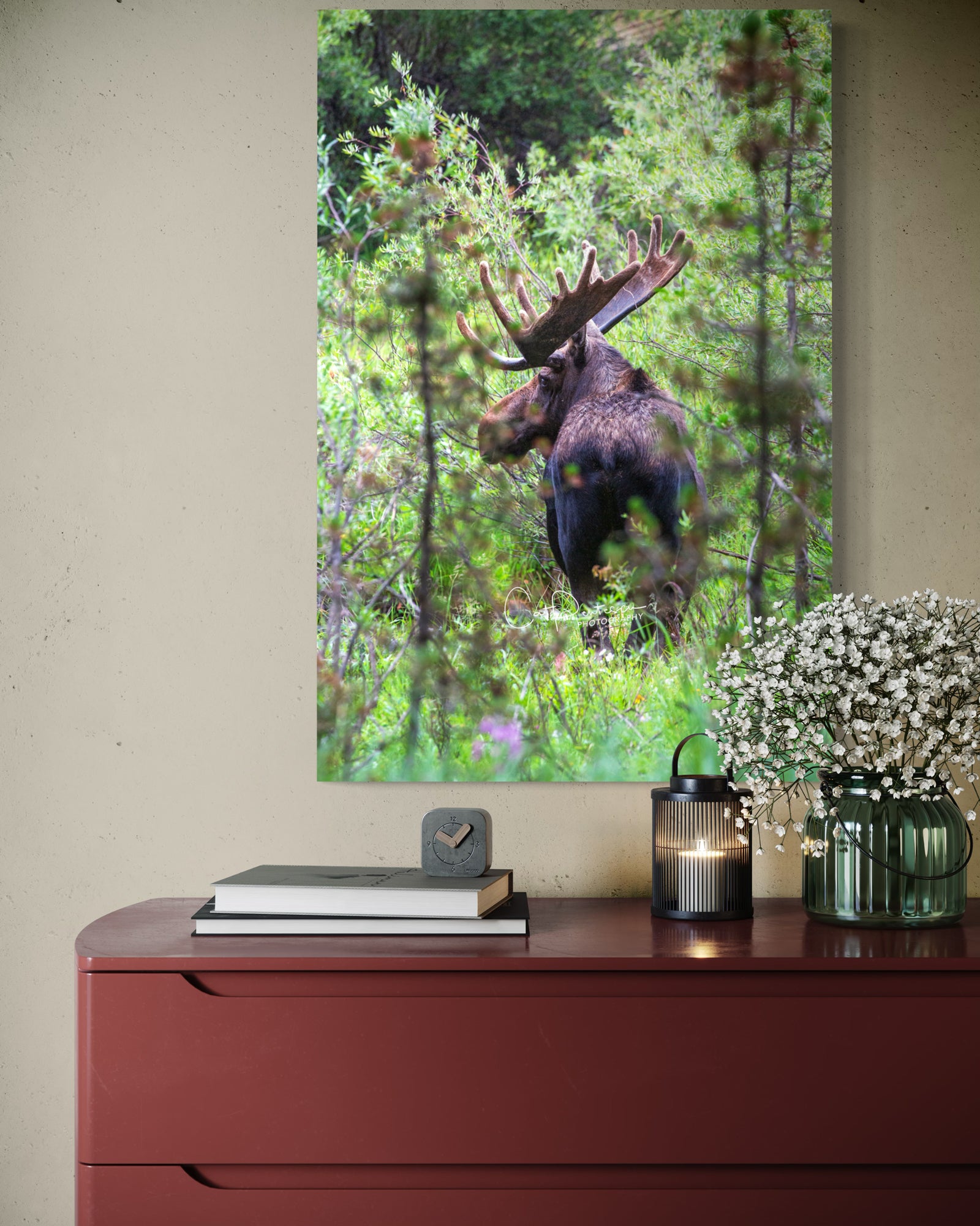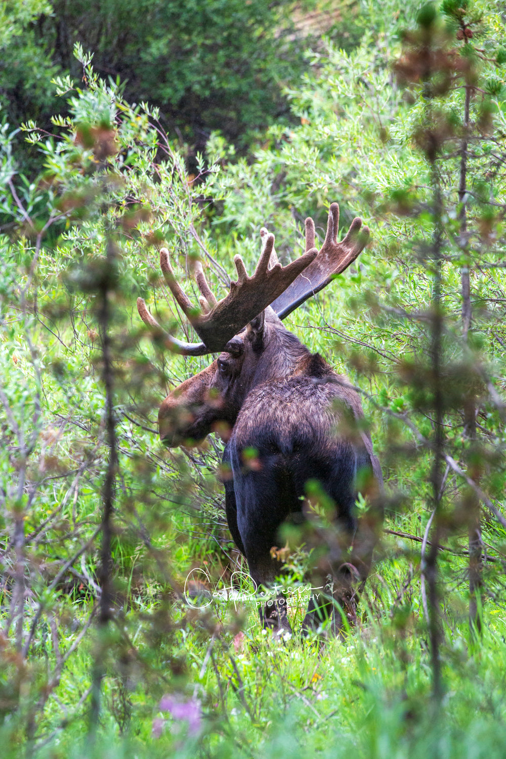 Big bull moose taking one last look at what he is leaving behind before moving forward toward where his journey leads him. Taken by Nature and Wildlife Photographer, Cat Pentescu.