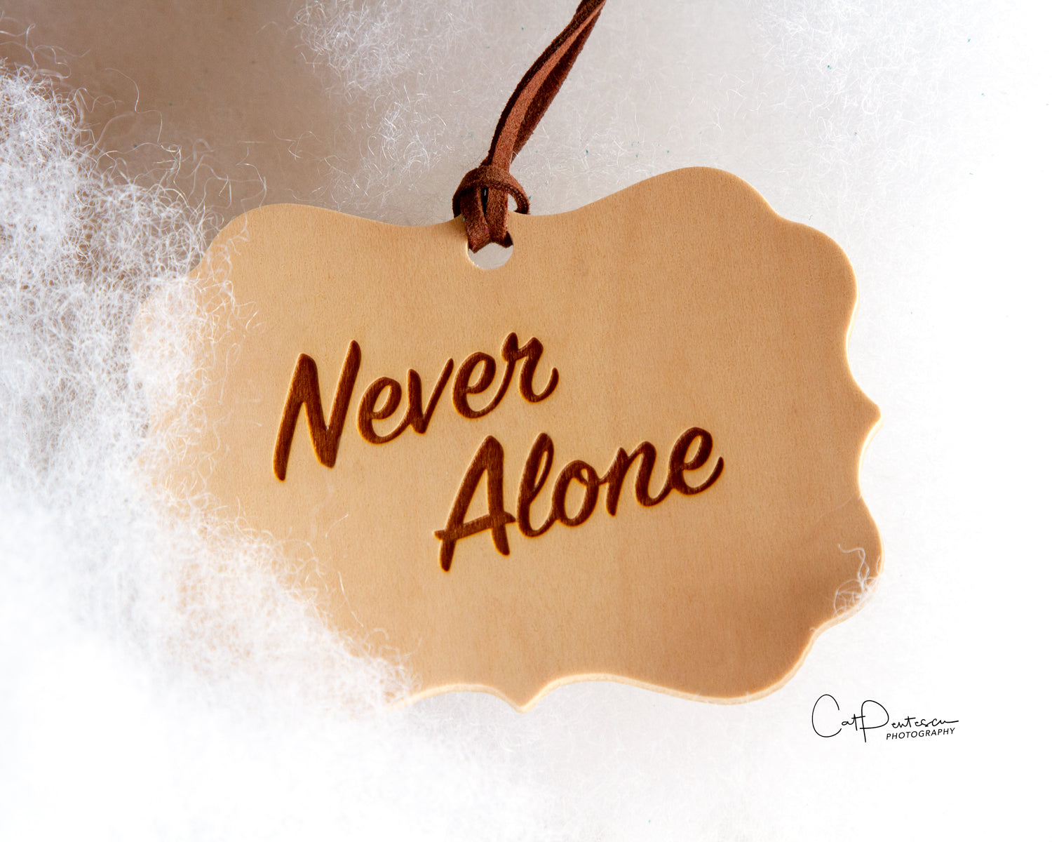 These ornaments have a wood base with a semi-gloss finish on both sides. A subtle wood grain pattern may appear through the white or light areas of the image and engraving is on the back.