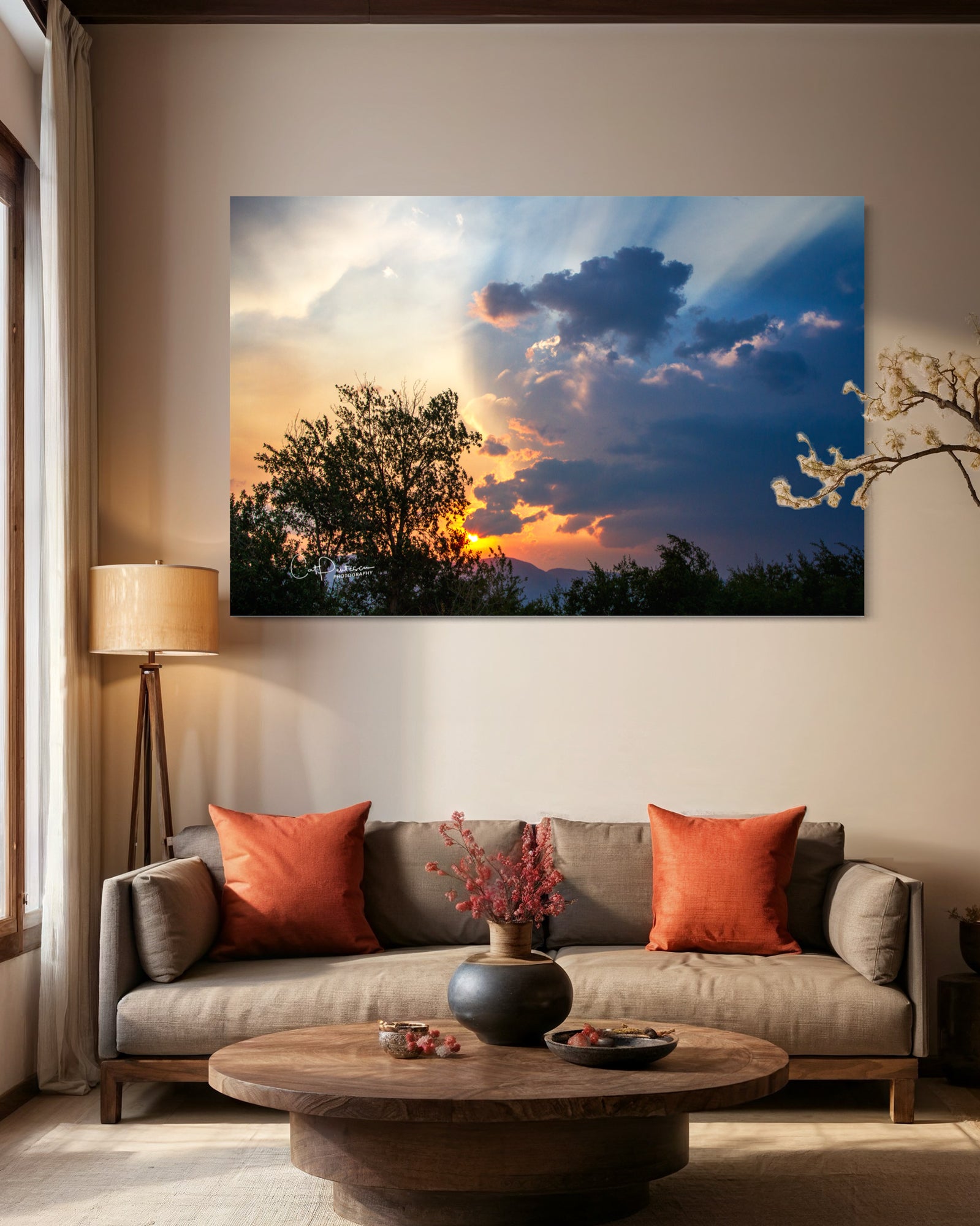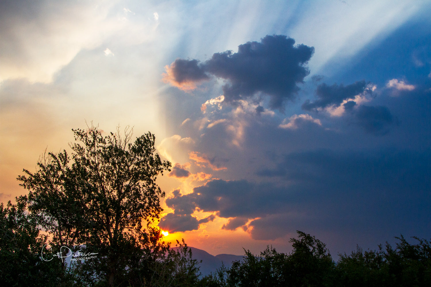 Captivating sunset as God's rays paint the sky beautiful. (God's rays are sunbeams that originate when the sun is near or just below the horizon, during twilight hours.) I have witnessed many beautiful sunsets. This one was mesmerizing!