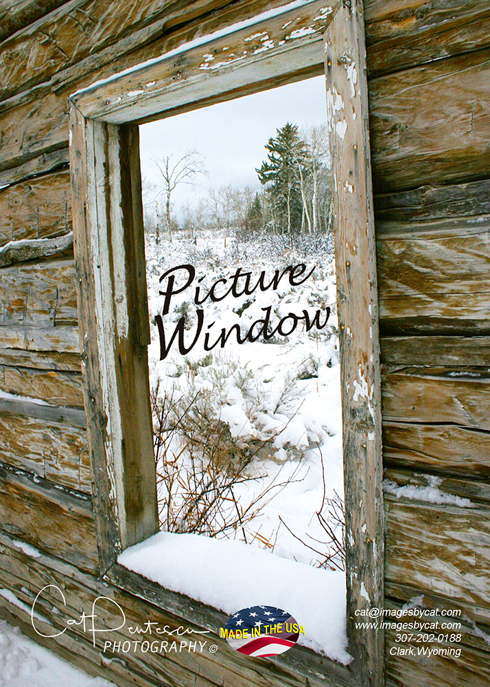 Looking through the Picture Window of an old log cabin in the Teton Mountains, The question remains... are you inside or out? This 5"x7" full color greeting card is blank inside, ready for you to add your personal message.