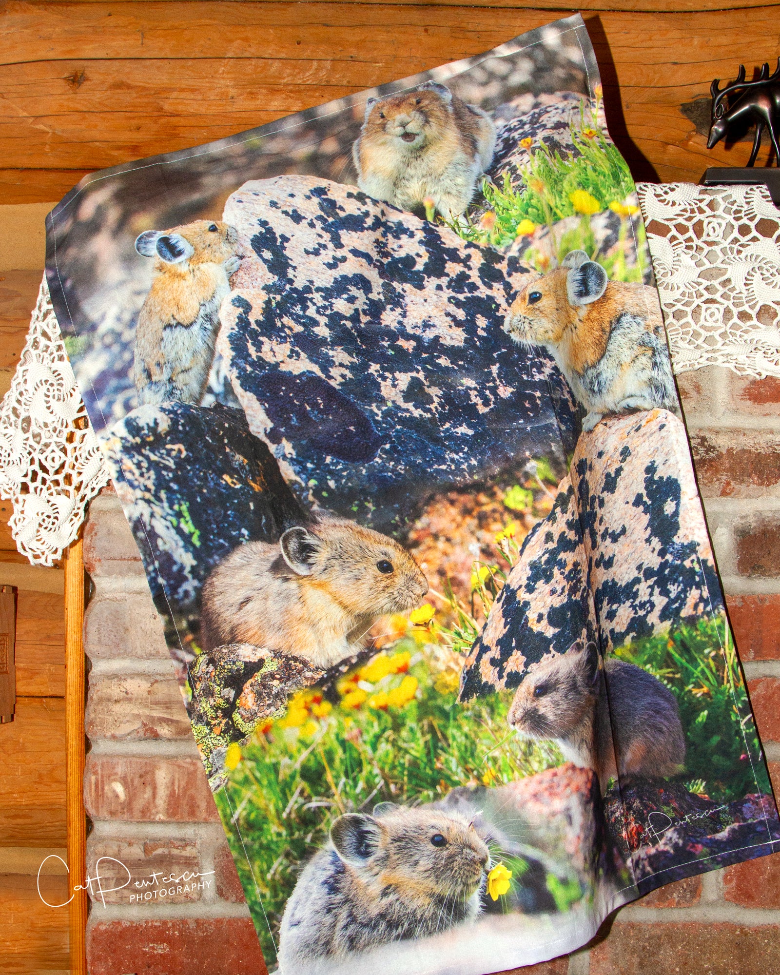 This Pika montage is available on premium market totes and 22" square pillow covers.