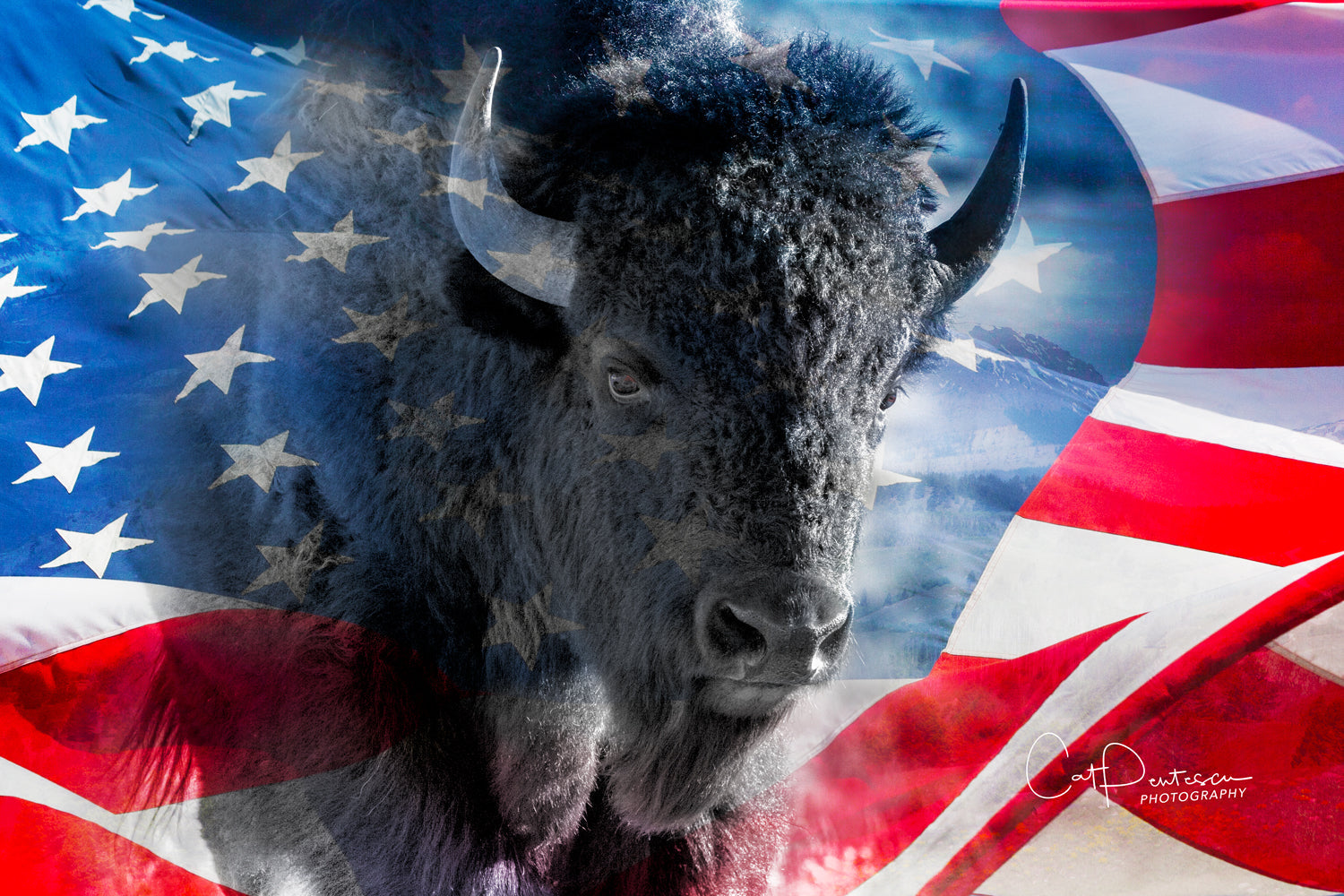 Whether you call him a buffalo, bison or Tatanka, his American roots run deep in US history, as does Old Glory, our American flag. Powerful and proud montage.