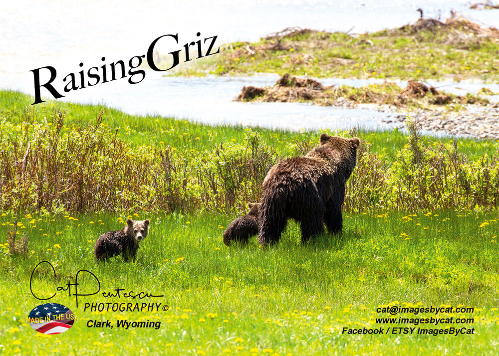 Momma Griz with her two cubs was a sight to see! Momma sure had her paws full! This 5"x7" full color greeting card is blank inside to write your message.