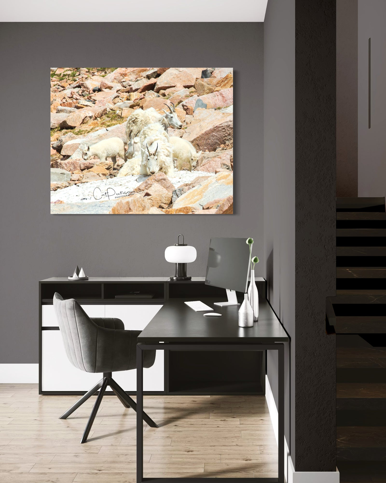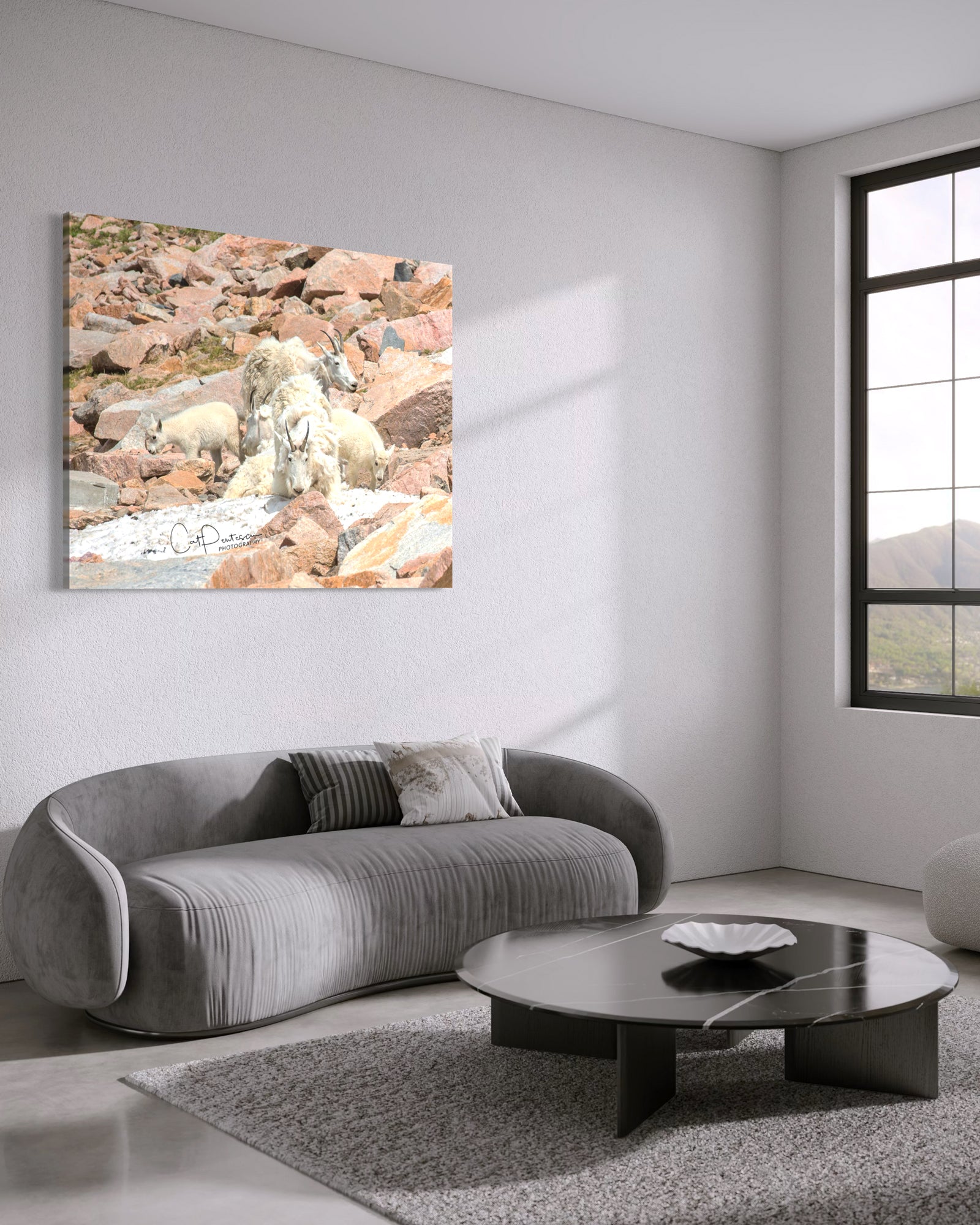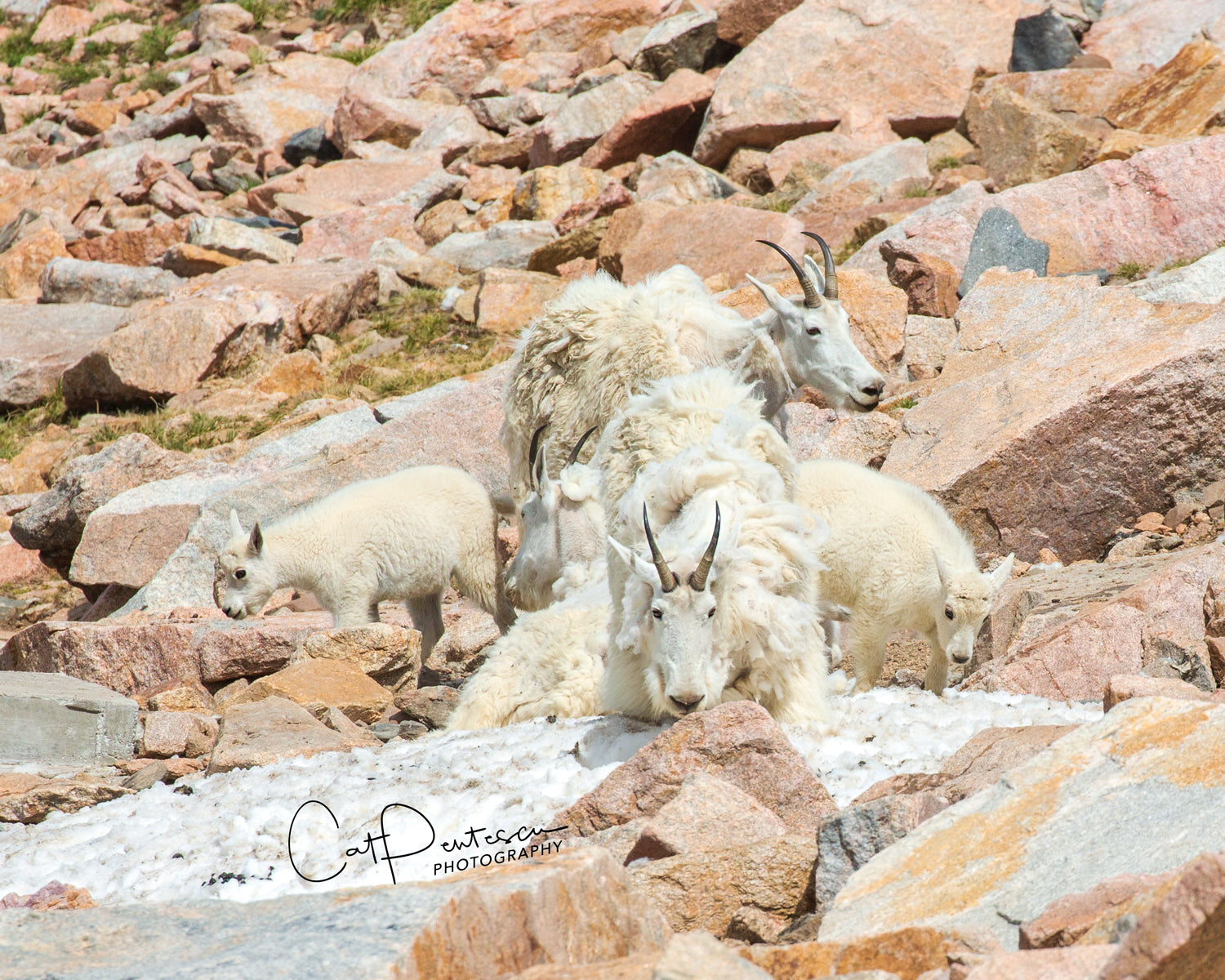 Watching over the kids takes more then one when they are mountain goat babies! Their free spirits with big attitudes make them quite a hoof full to raise! They learn quickly how to navigate their rocky surroundings so it is rare to find them standing still!