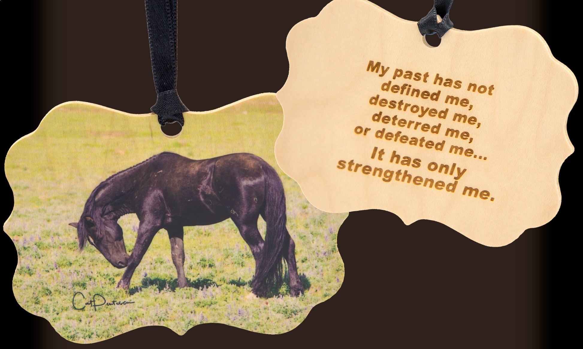 Inspired By Life - "Strengthened Me" on wood. The muted color image is Battle Worn and has an aged look with wood grain showing through light areas. The back is engraved with inspiring words for all. A message to carry with you year 'round. Not just for Christmas, this unique ornament/medallion can be hung year 'round.