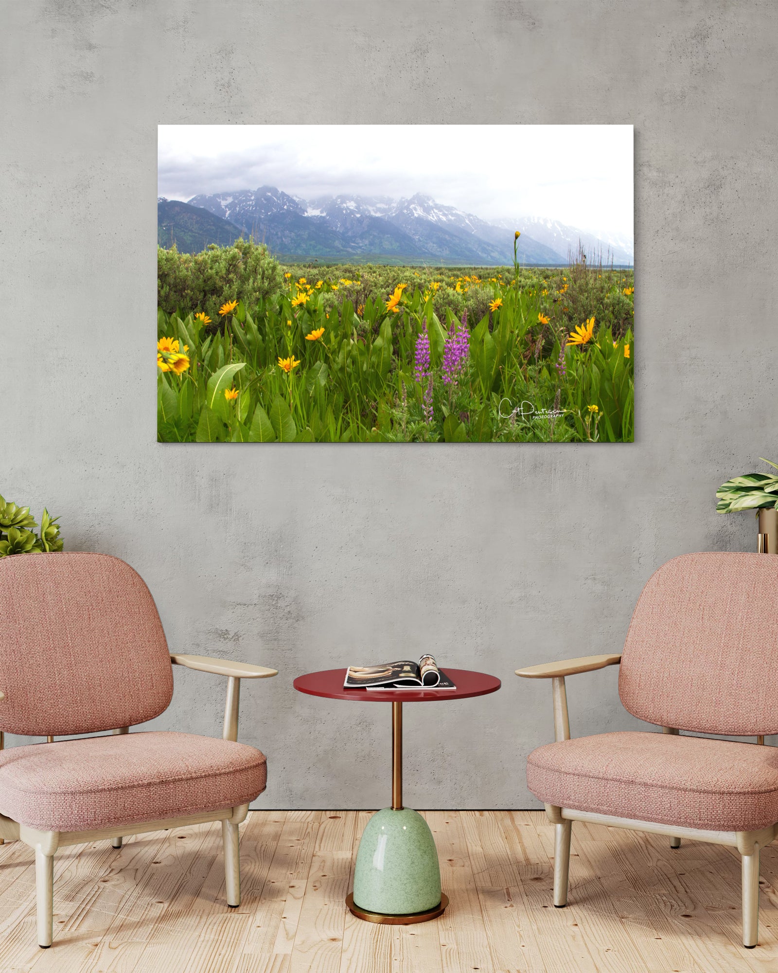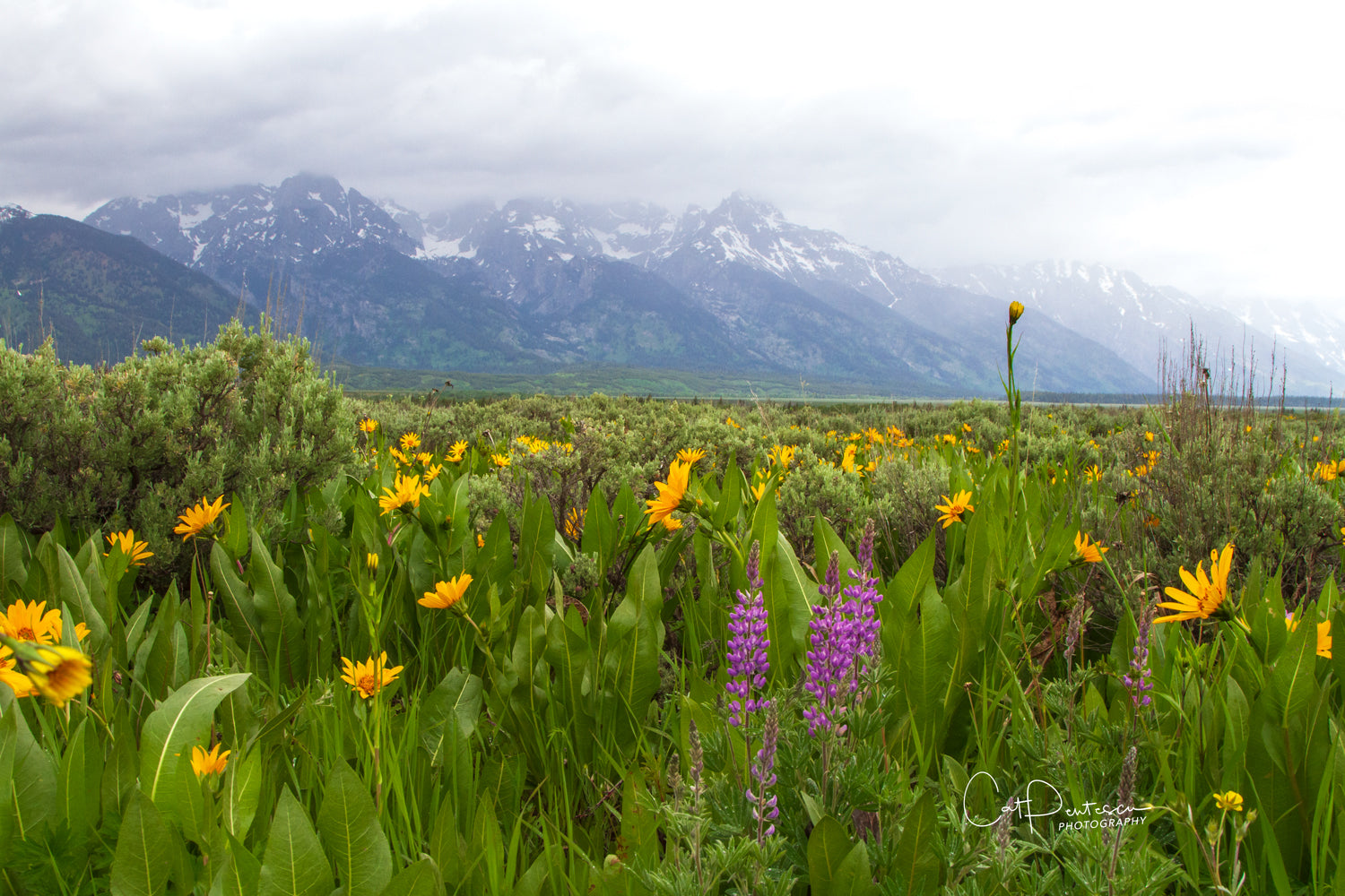 With the rain comes the wildflowers. A stormy day in the mutes the Teton mountains yet brings out the colors of the flowers.