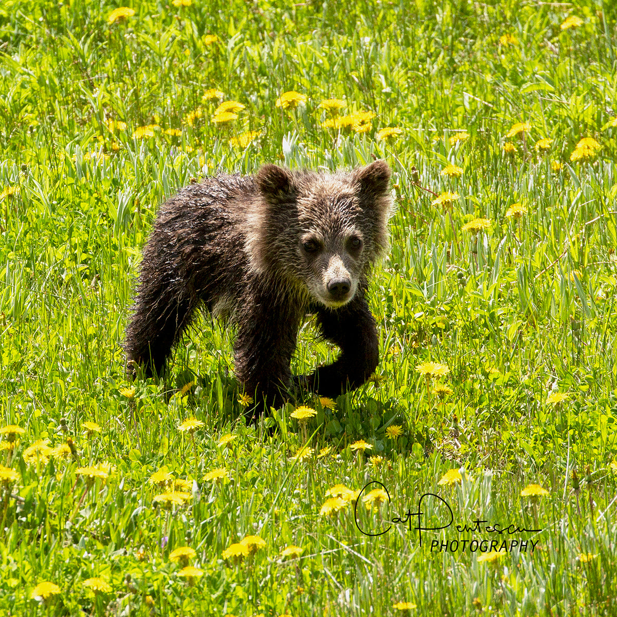 This little Grizzly cub is already showing his true colors walking with that grizzly strut. Definitely a treat to watch, but be "beary" aware, Momma Bear is close by and watching too!