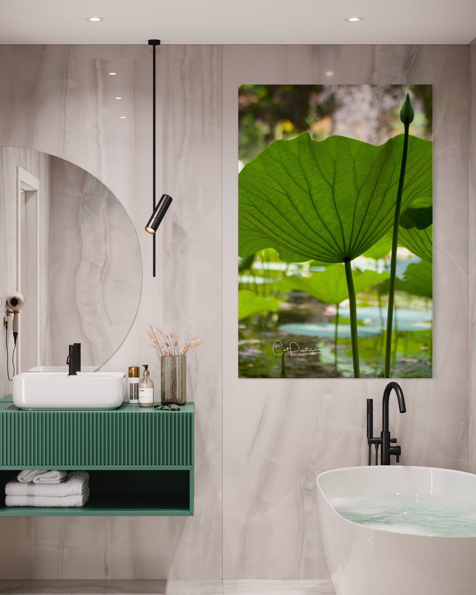 The huge lotus leaves create a canopy for the pond, shading everything that lives in the water below.