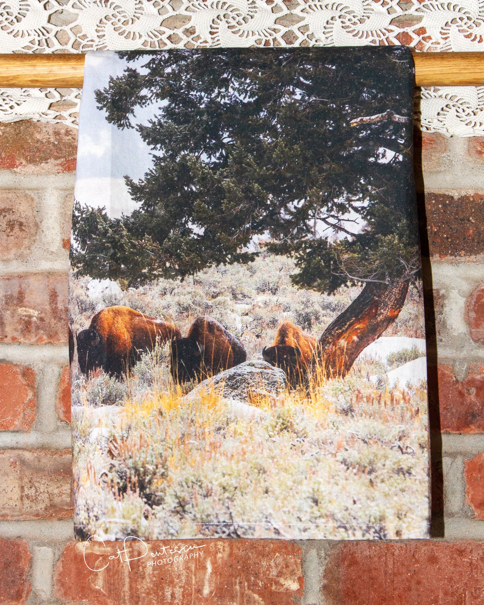 As massive as the buffalo are, they are dwarfed as they walk through the vast mountain landscape, rocks and trees. A world where they roam free.