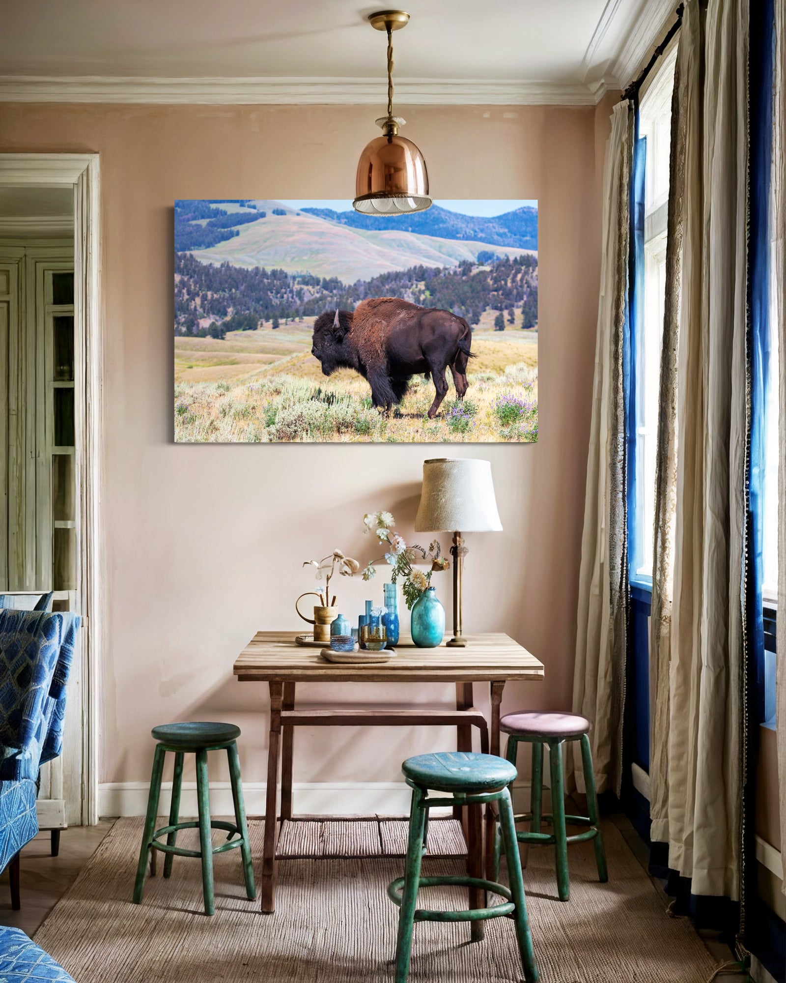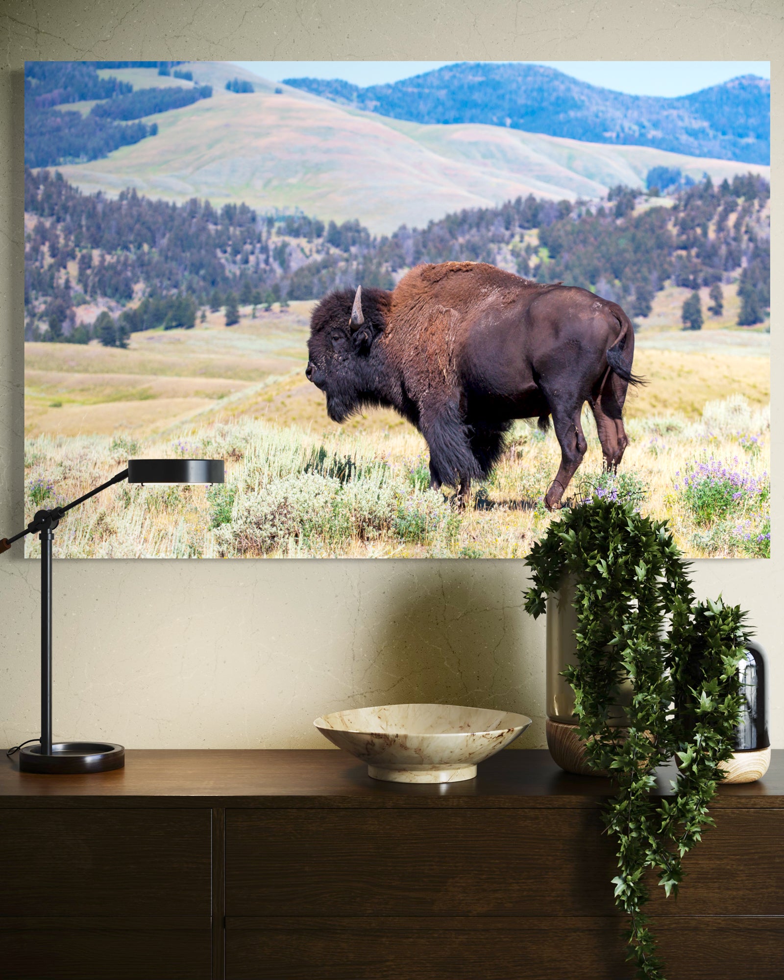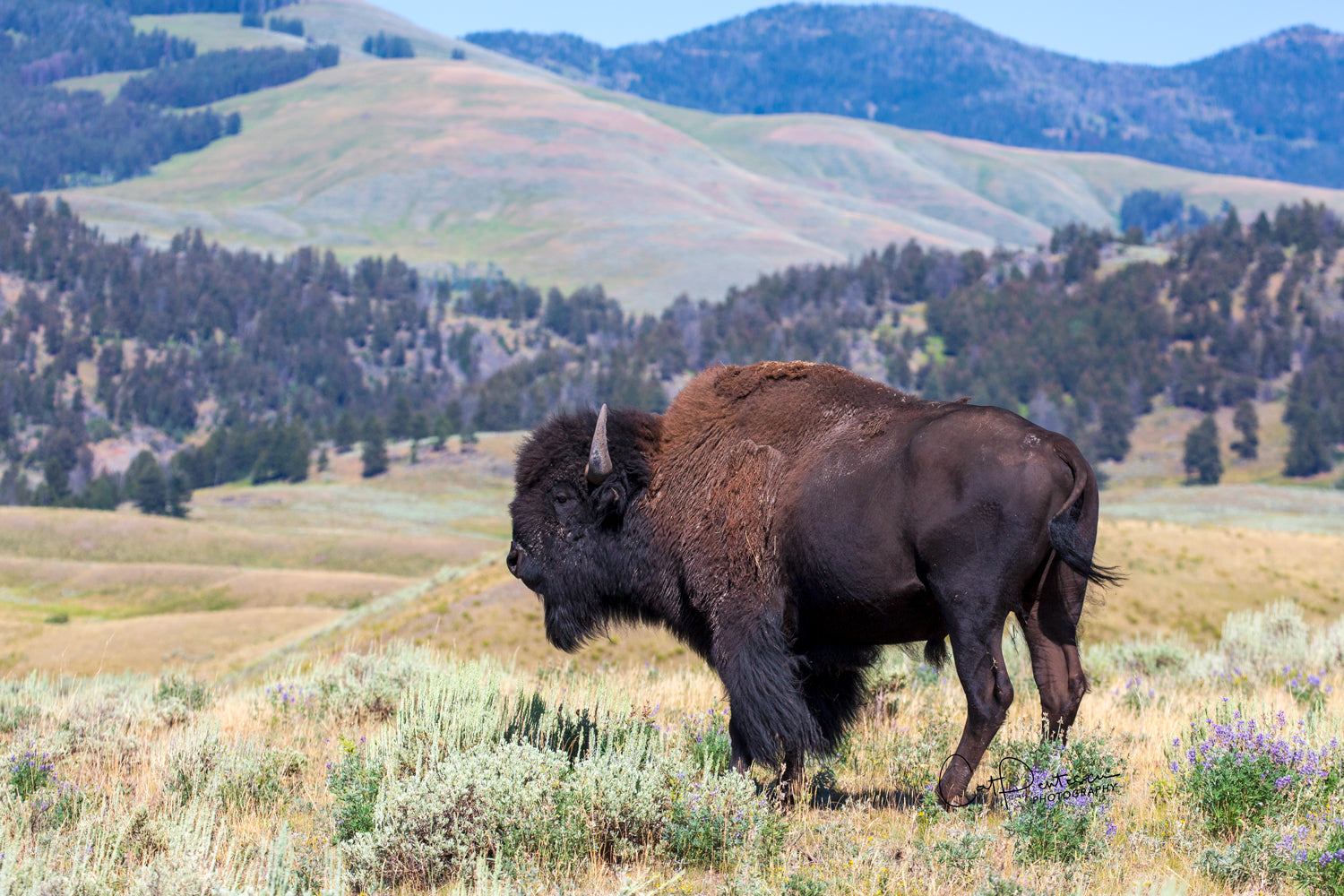 Wild American buffalo in wide open spaces, living free. This is the life they deserve.