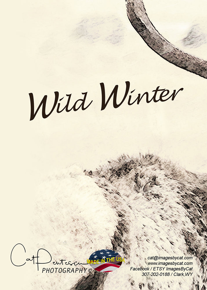 Bull Elk among the herd in a snow storm. Created to look more like a painting than a photograph, this piece is unique, and the sepia tone makes it timeless. This 5"x7" full color greeting card is blank inside to write your message.